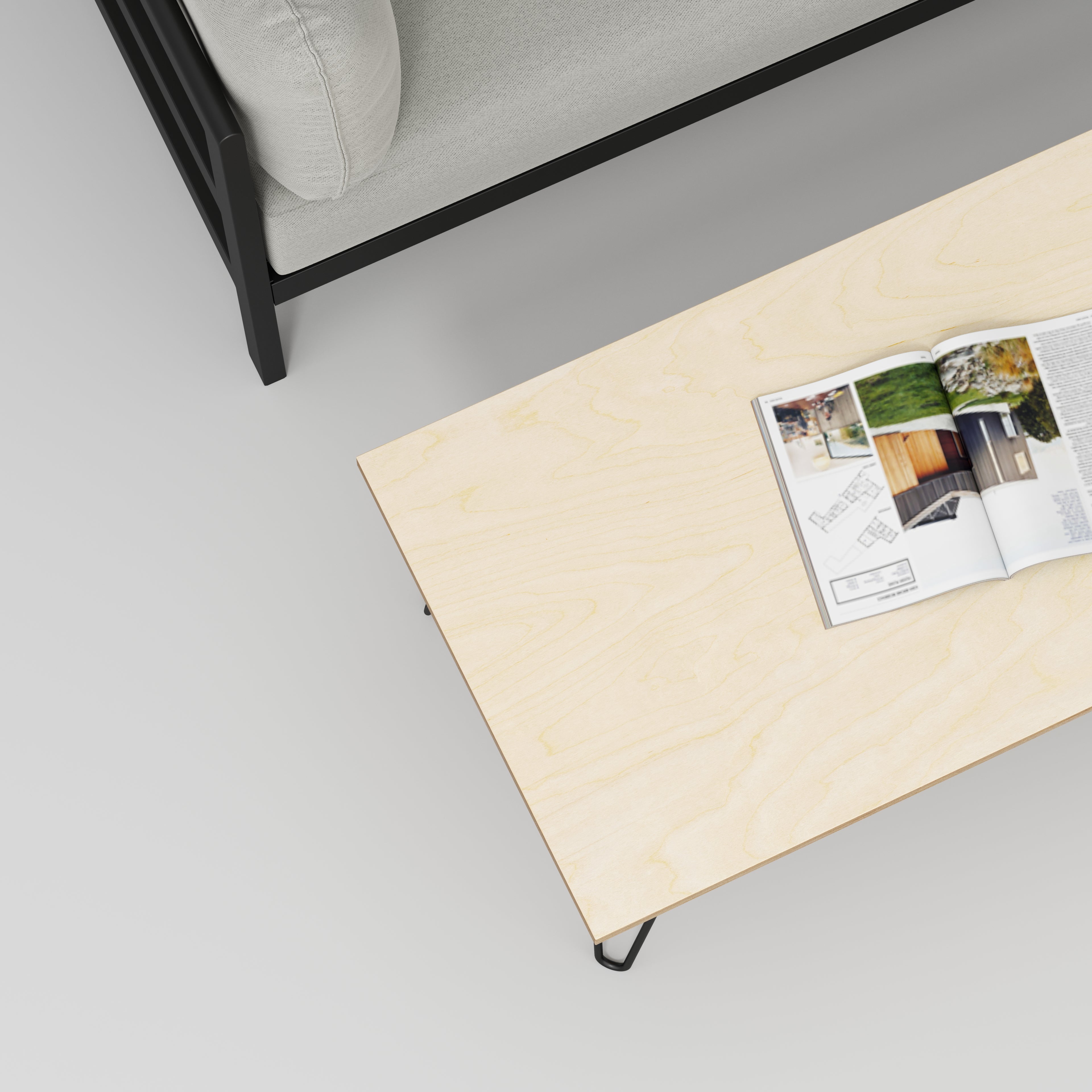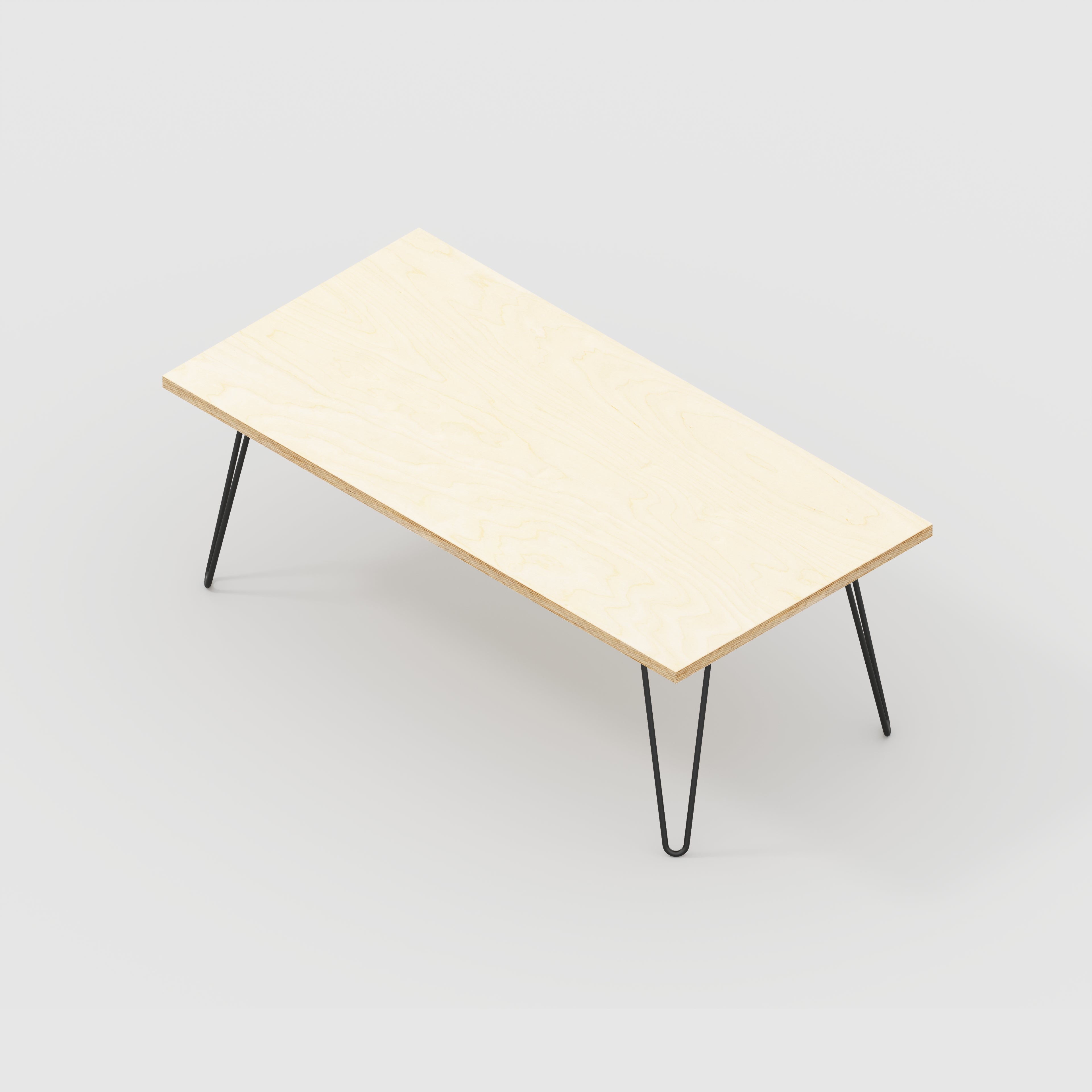 Plywood Coffee Table with Black Hairpin Legs - Plywood Birch - 1200(w) x 600(d) x 425(h)