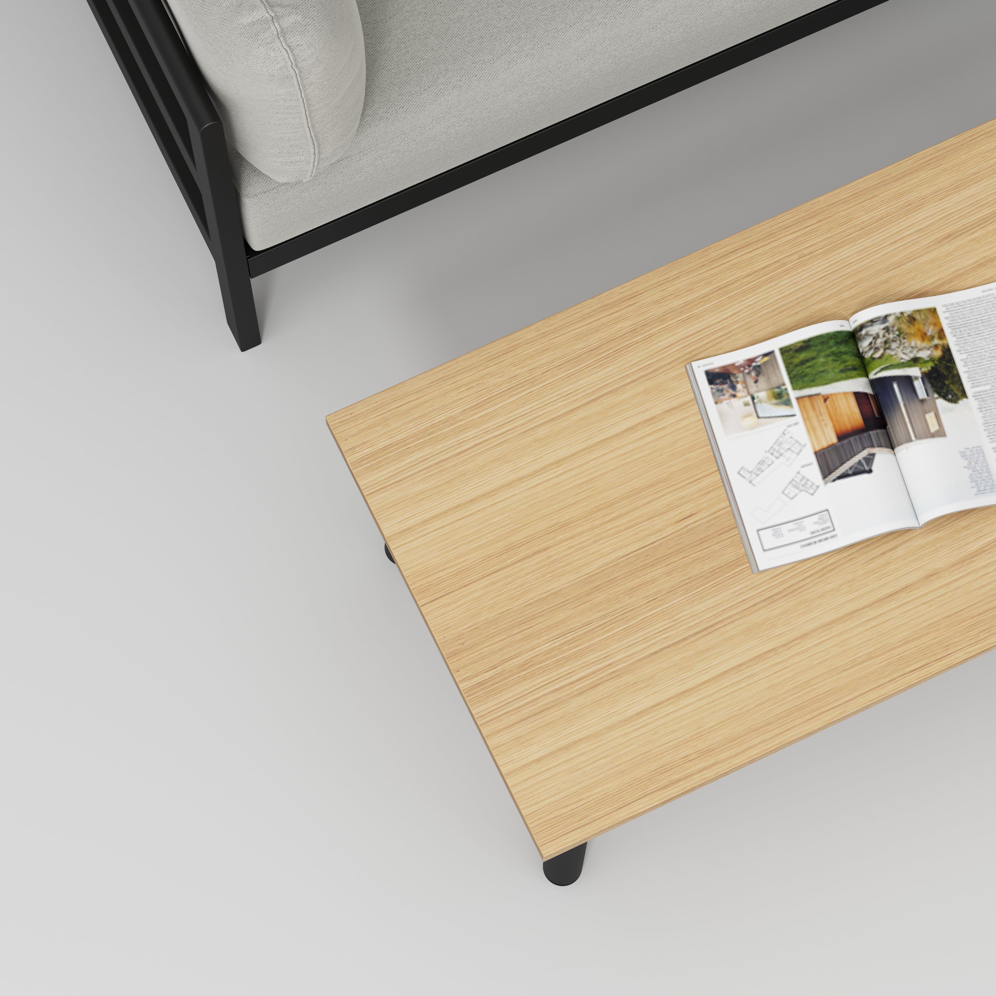 Plywood Coffee Table with Black Round Single Pin Legs - Plywood Oak - 1200(w) x 600(d) x 425(h)