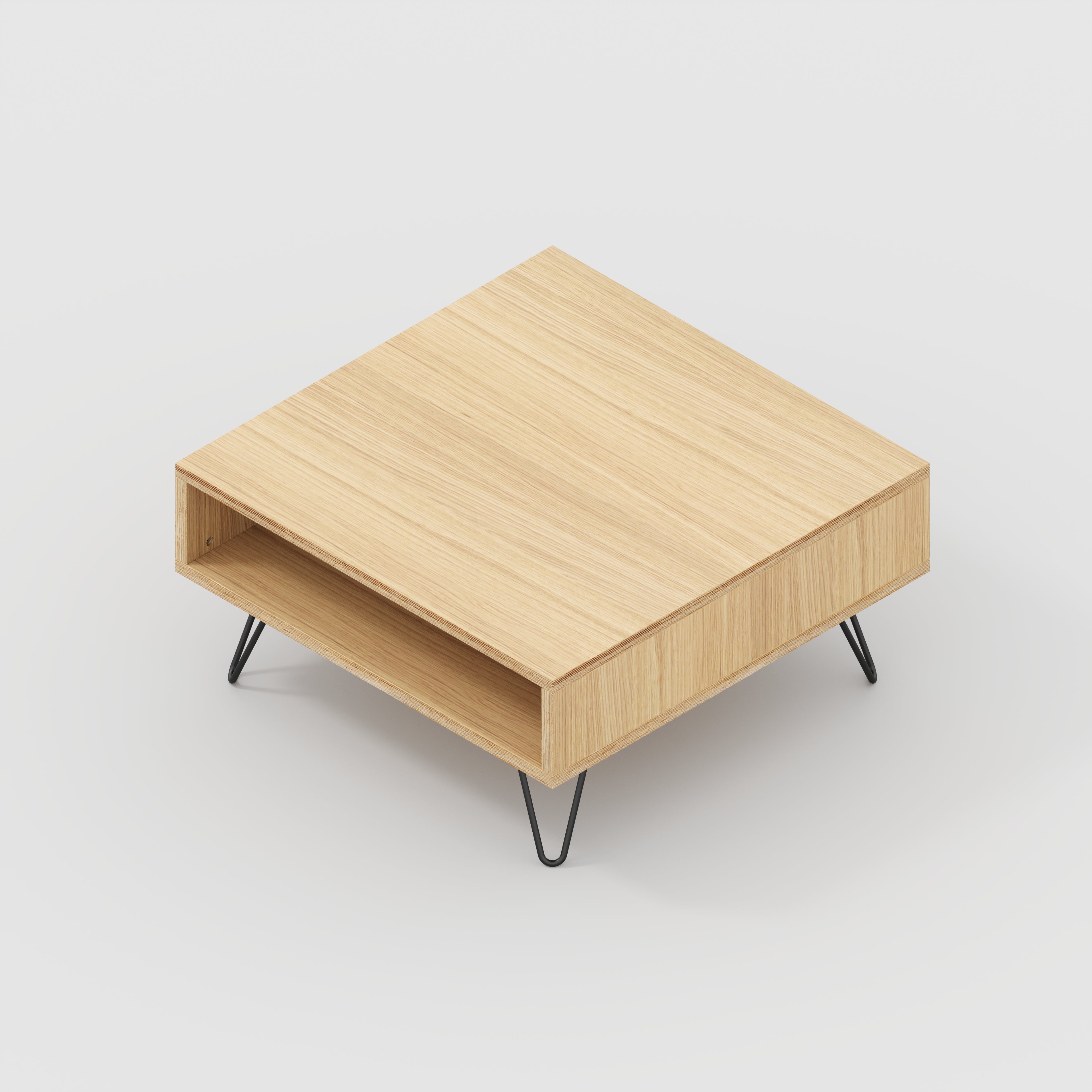 Plywood Coffee Table with Box Storage and Black Hairpin Legs - Plywood Oak - 800(w) x 800(d) x 400(h)
