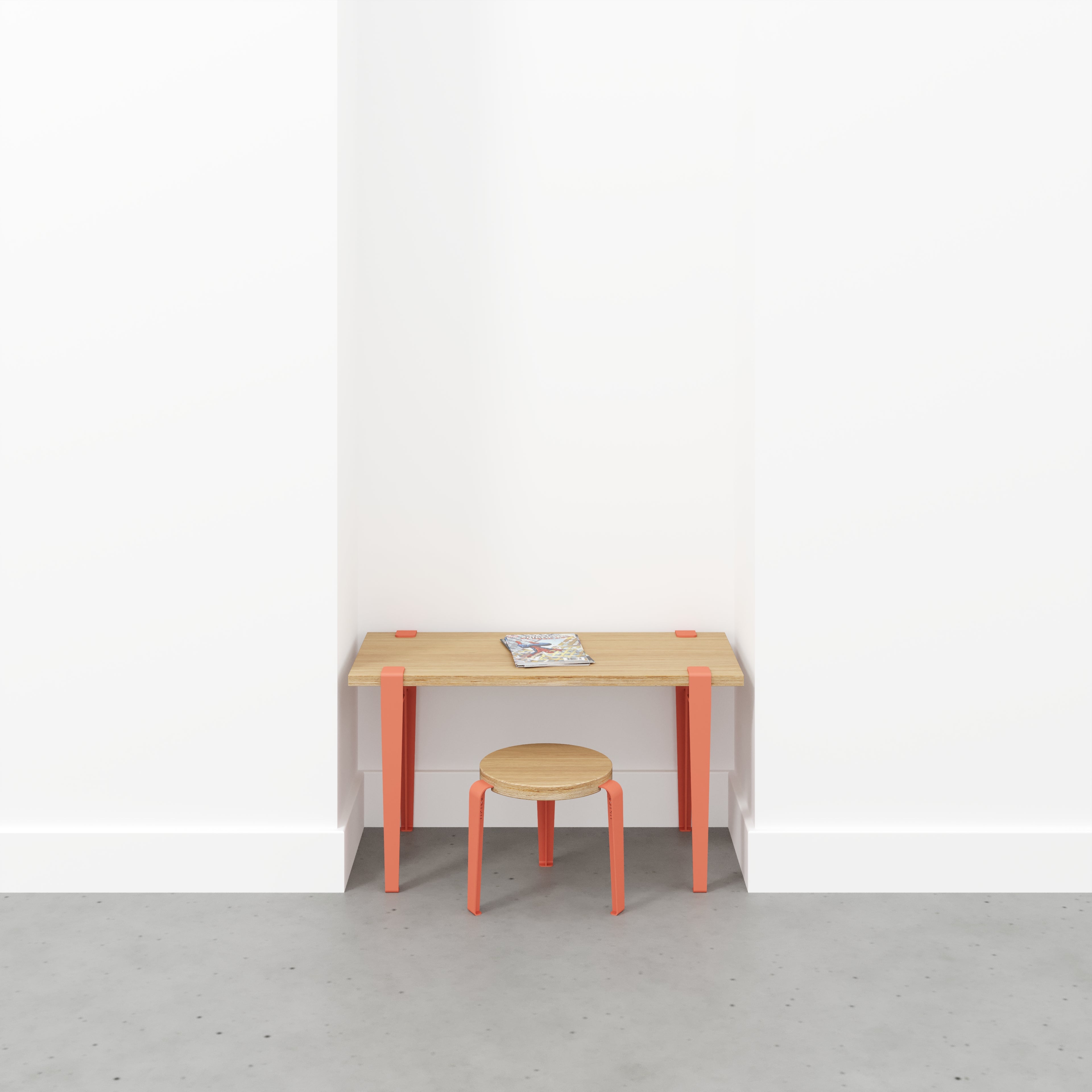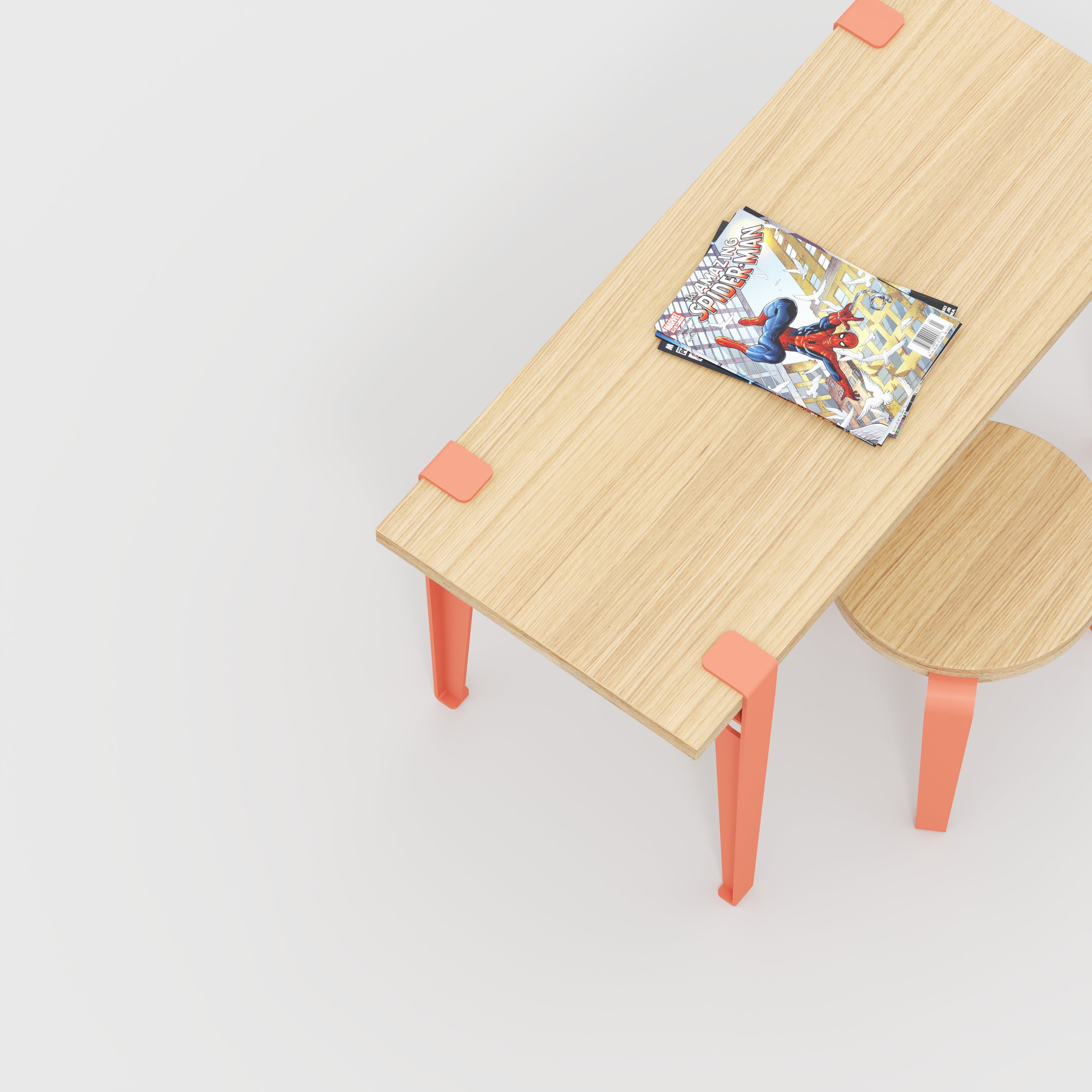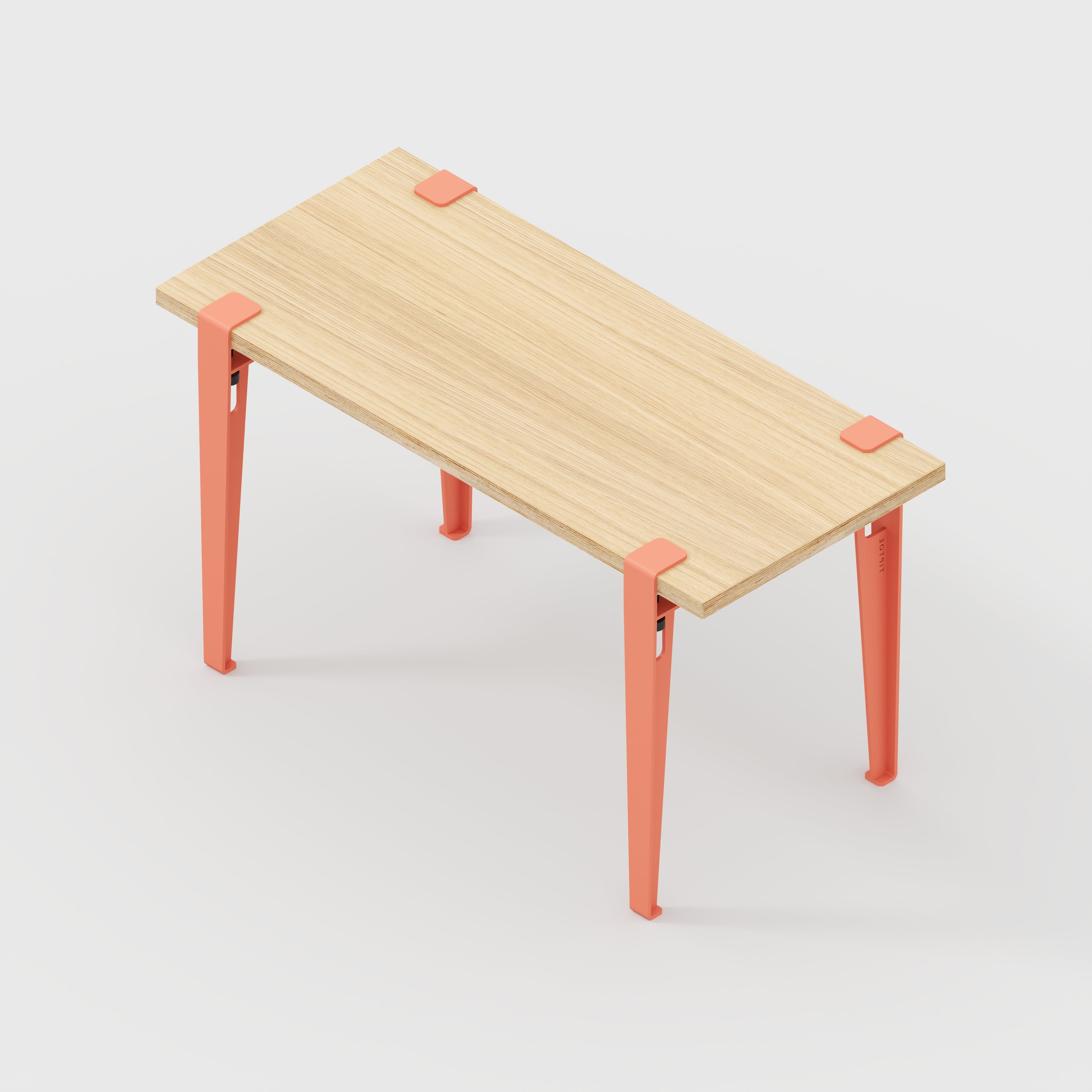 Plywood Kids Desk with Flamingo Pink Tiptoe Legs - Plywood Oak - 800(w) x 400(d) x 500(h)