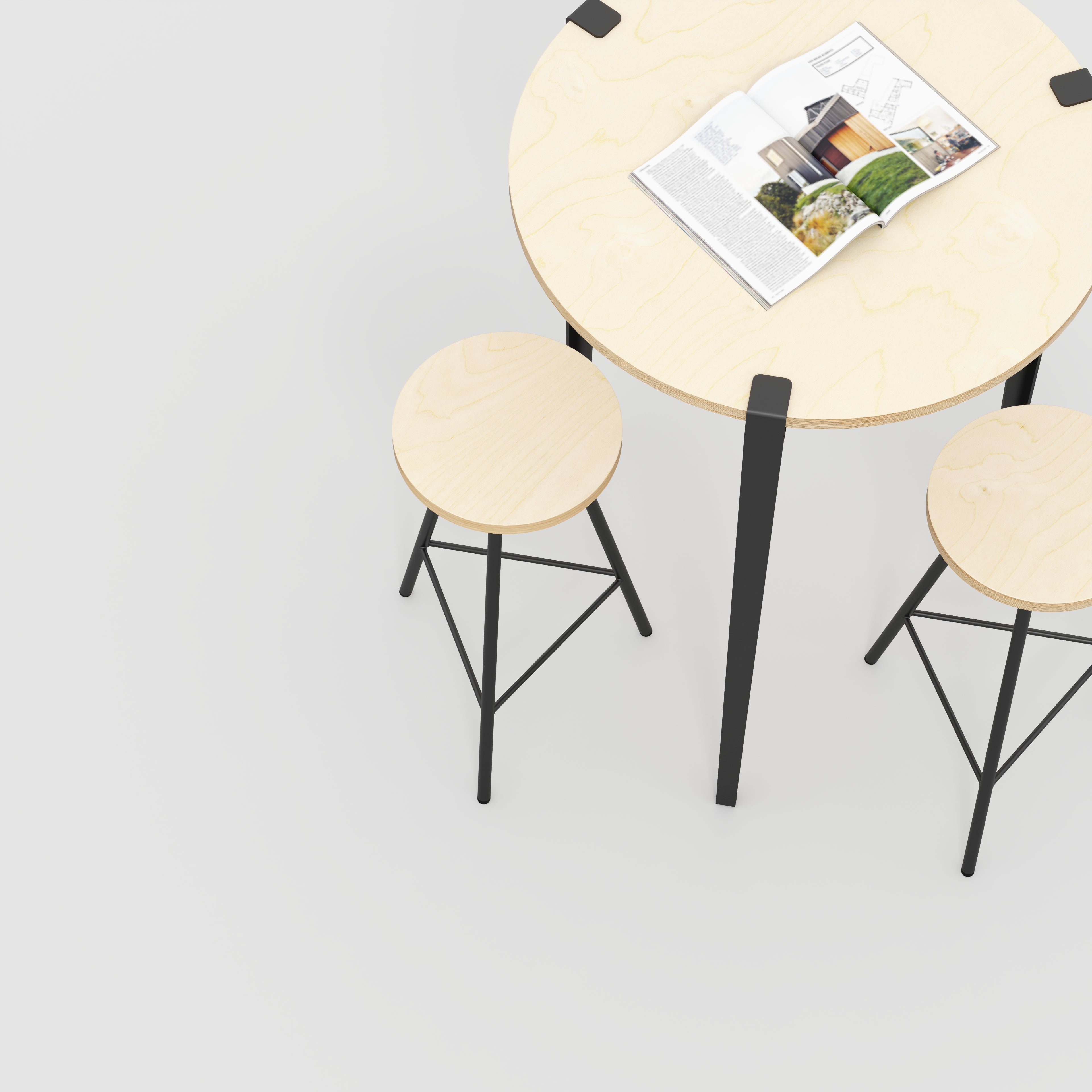 Plywood Round Table with Black Tiptoe Legs - Plywood Birch - 800(dia) x 1100(h)
