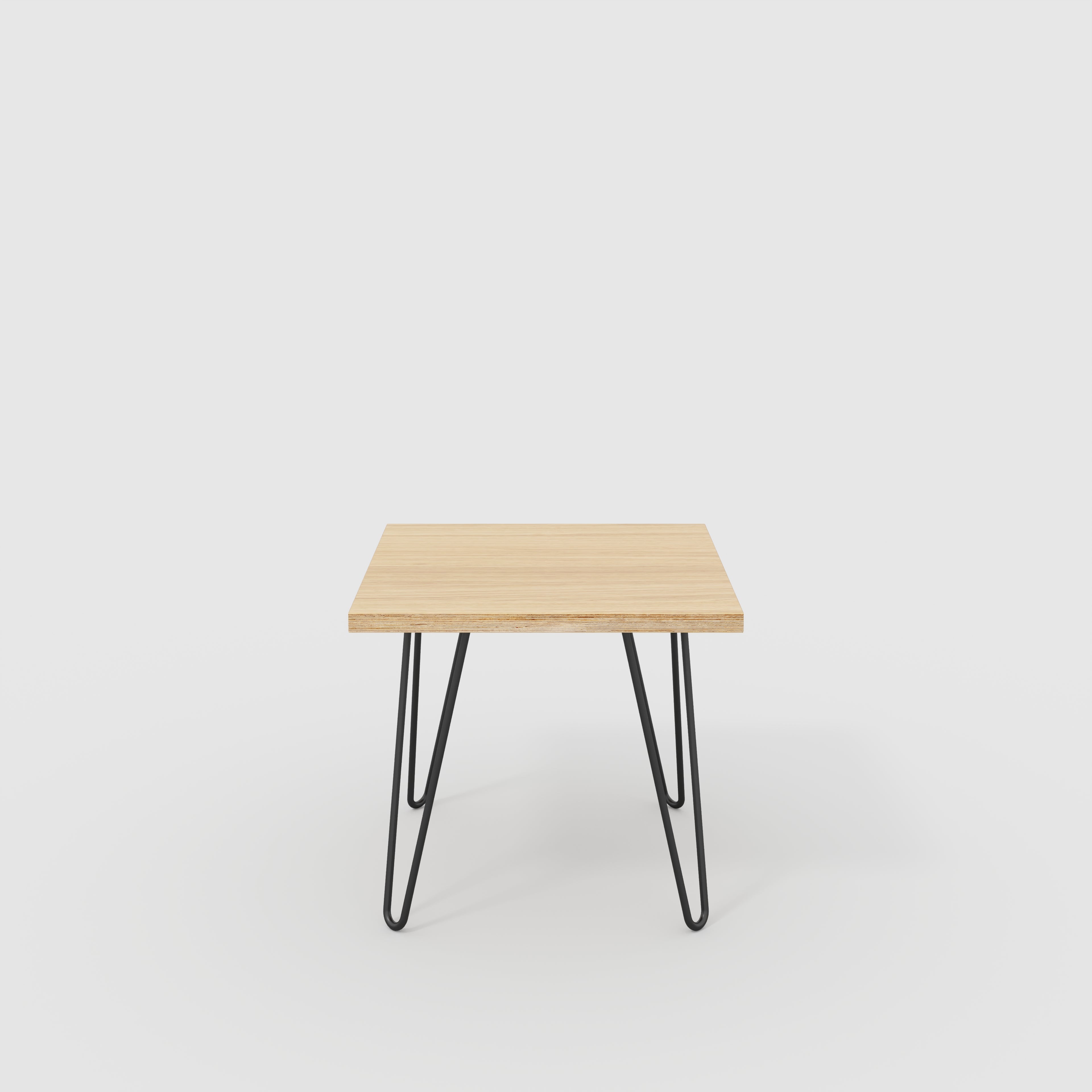 Plywood Side Table with Black Hairpin Legs - Plywood Oak - 500(w) x 500(d) x 425(h)