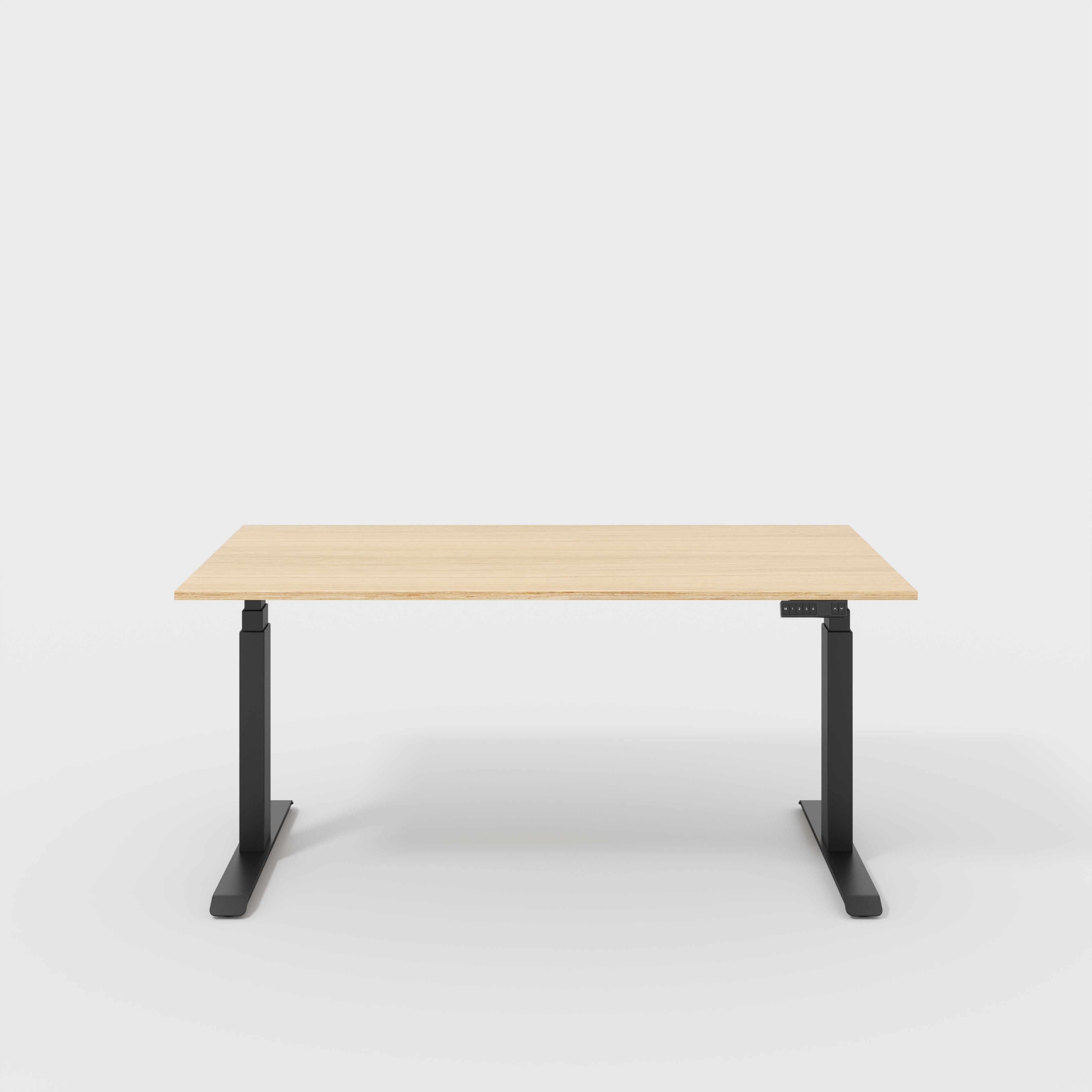 Plywood Sit Stand Desk with Black Frame - Plywood Oak - 1600(w) x 800(d)