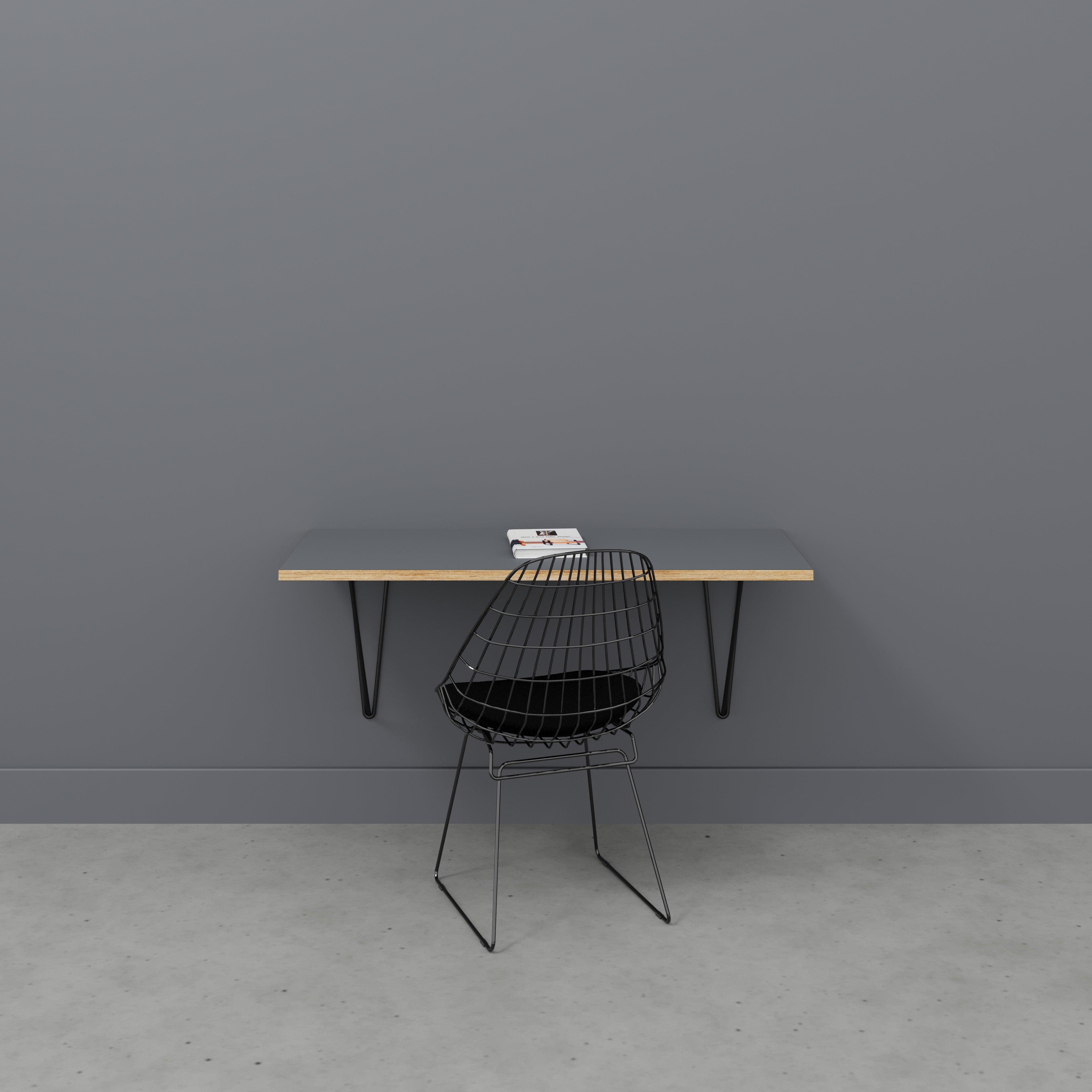 Plywood Wall Desk with Black Prism Brackets - Formica Tornado Grey - 1200(w) x 600(d)
