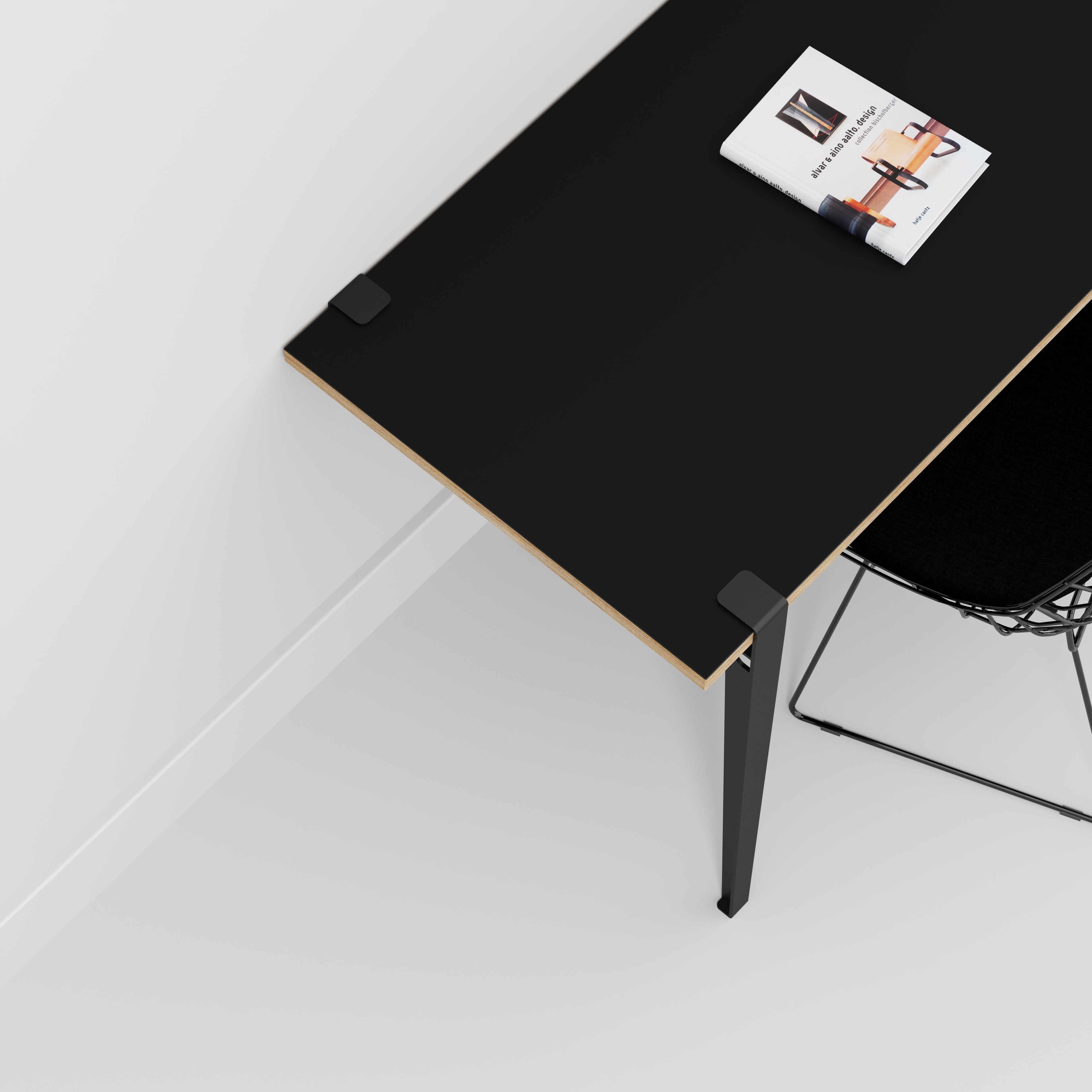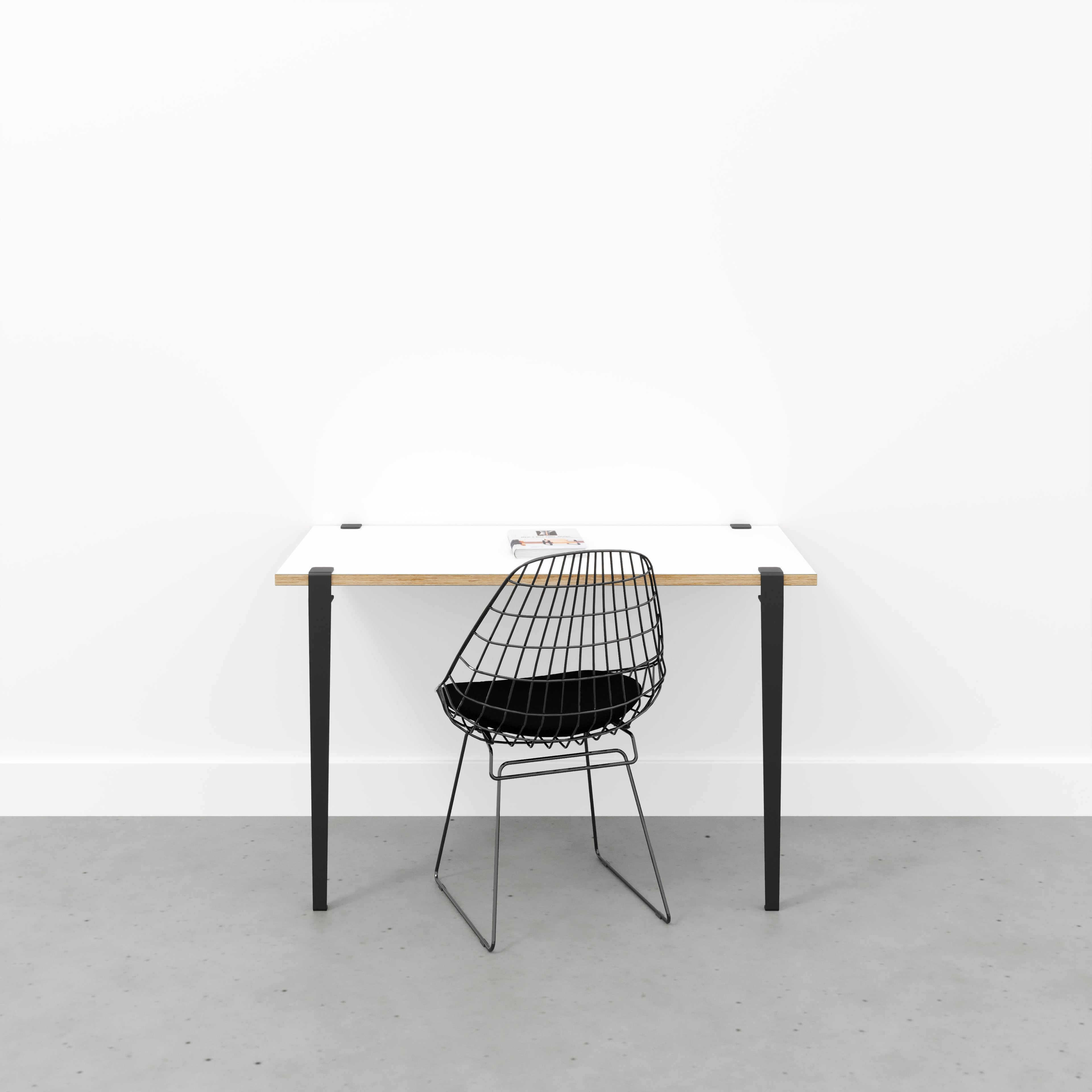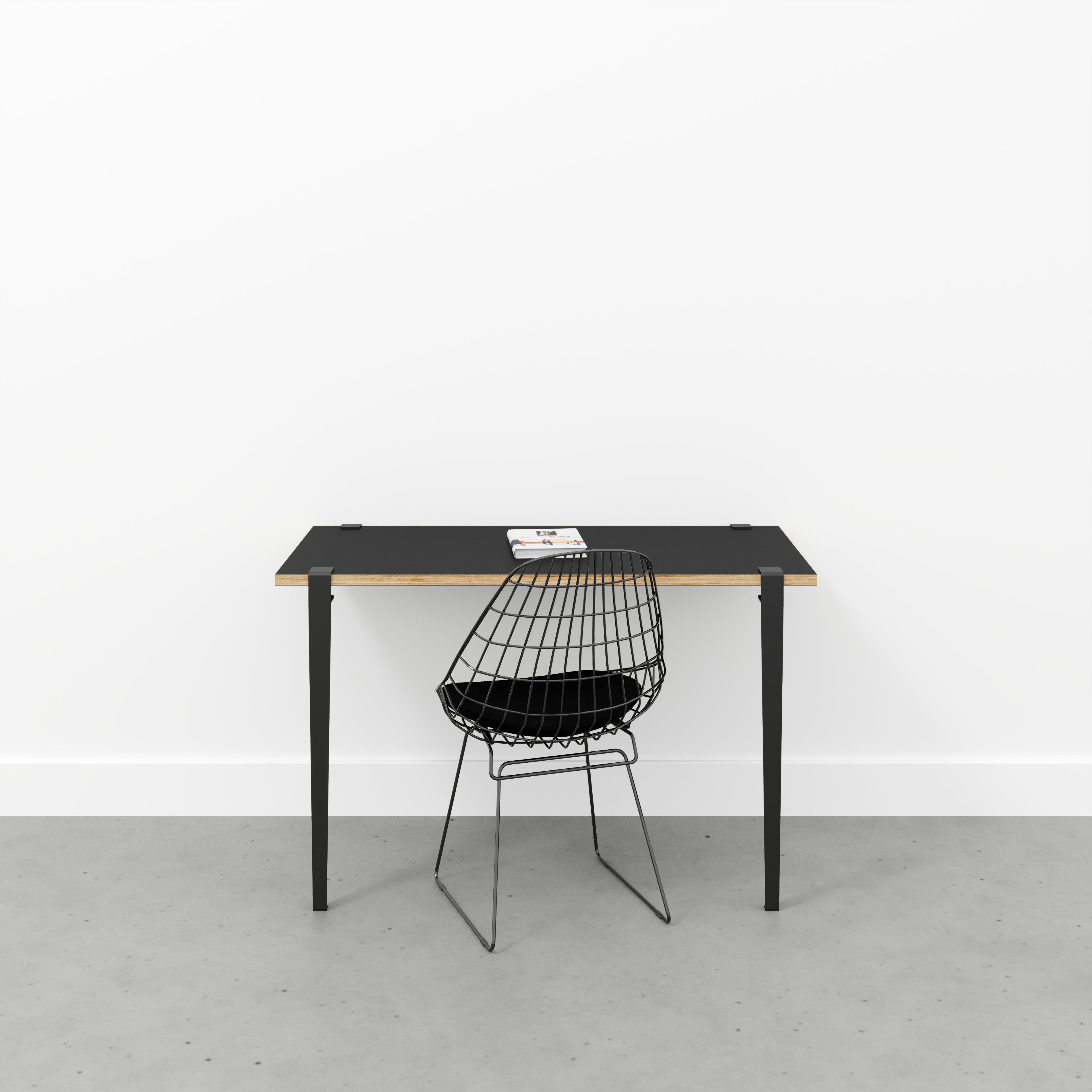 Plywood Wall Desk with Black Tiptoe Legs and Tiptoe Wall Brackets - Formica Diamond Black - 1200(w) x 600(d) x 750(h)