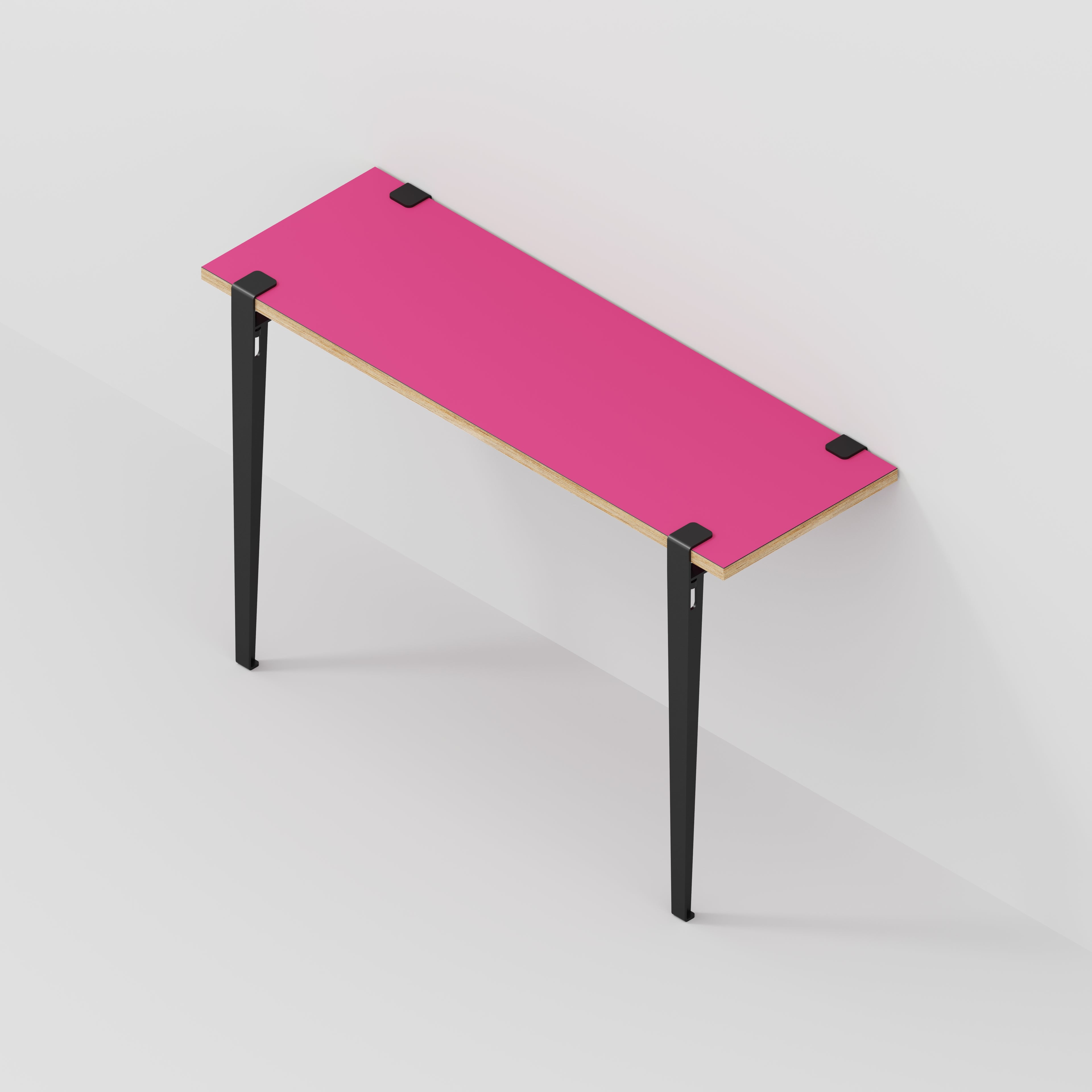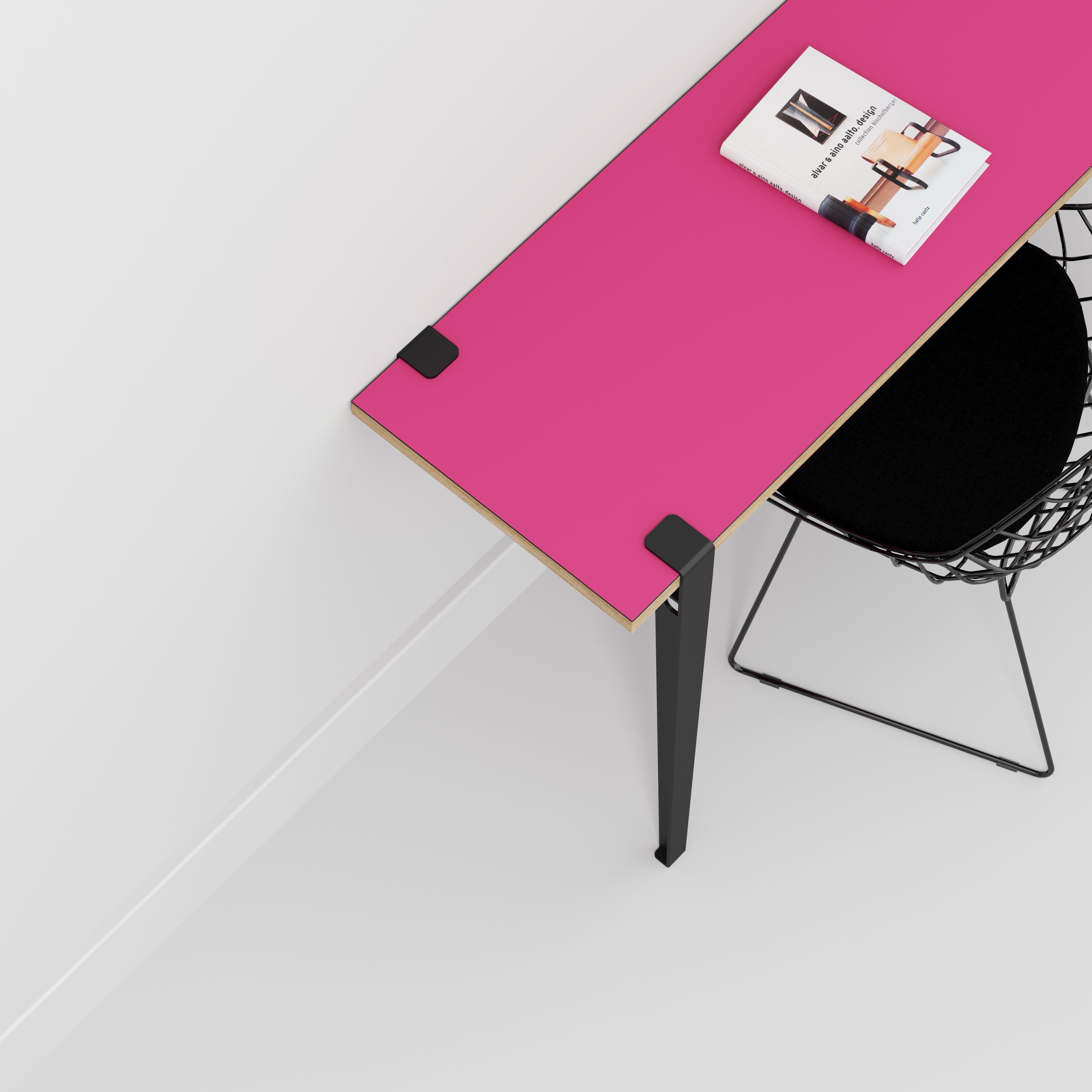 Plywood Wall Desk with Black Tiptoe Legs and Tiptoe Wall Brackets - Formica Juicy Pink - 1200(w) x 400(d) x 750(h)