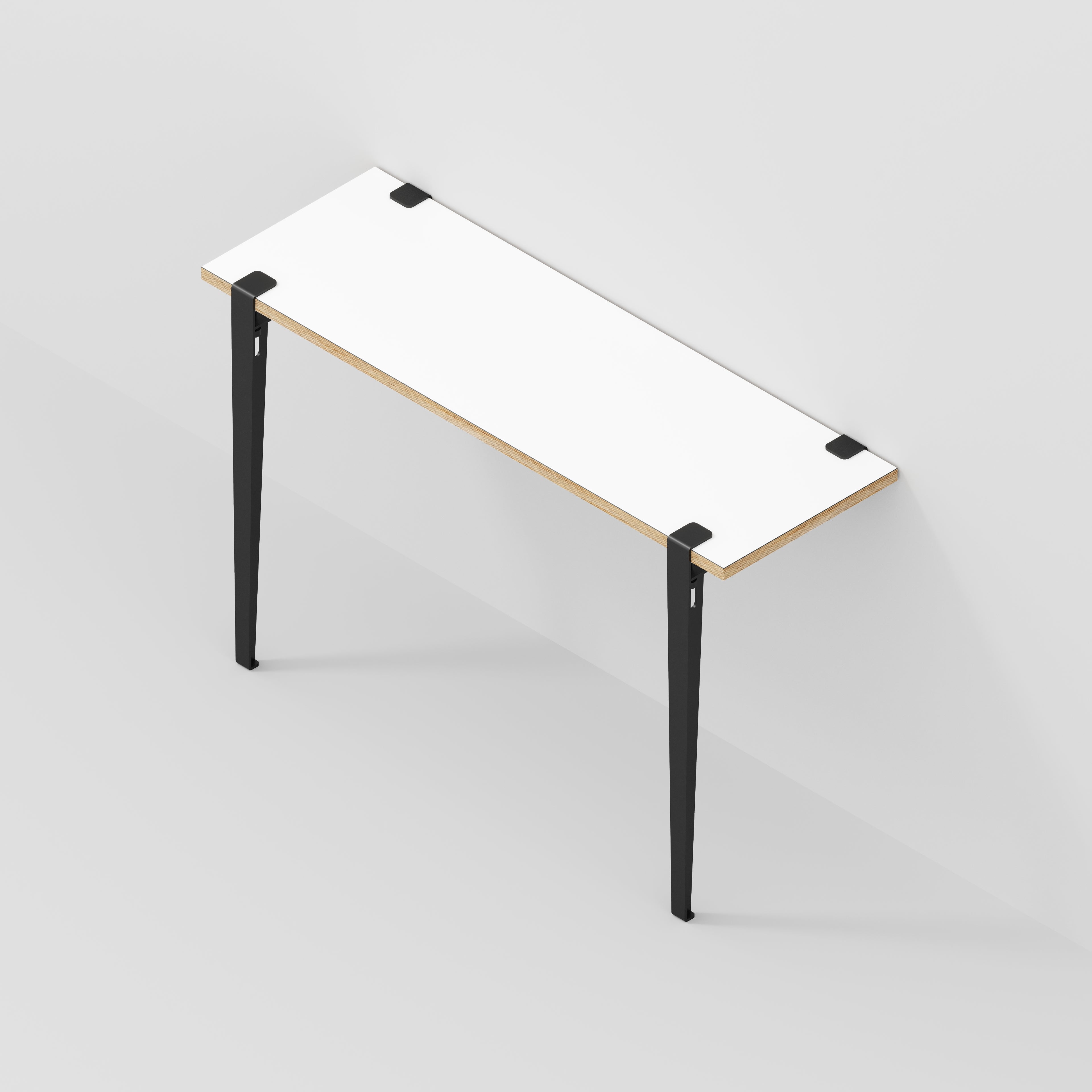 Plywood Wall Desk with Black Tiptoe Legs and Tiptoe Wall Brackets - Formica White - 1200(w) x 400(d) x 750(h)