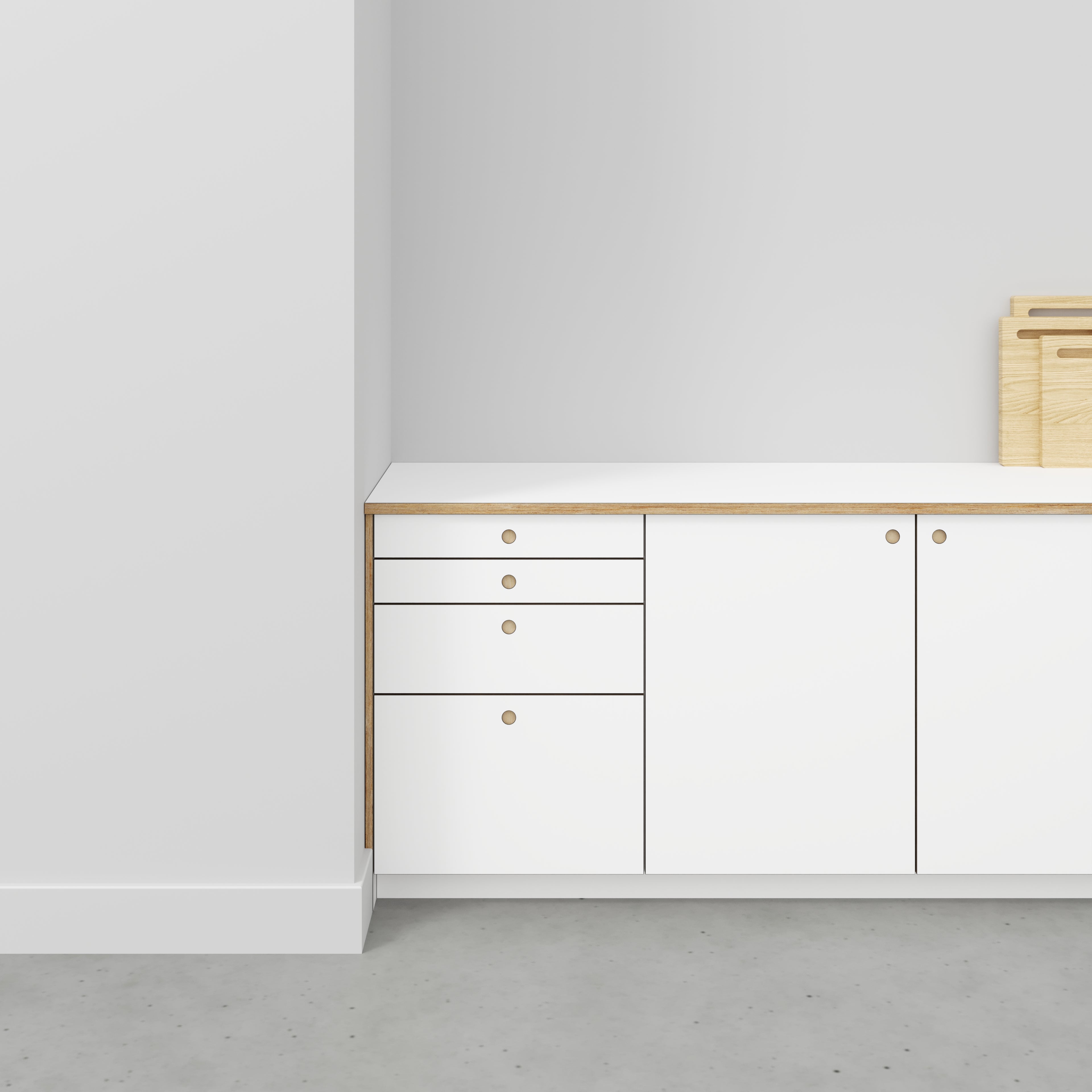 Built in 24mm BB/BB Birch Plywood. Faces are laminated in the colour of your choice. All plywood edges are left exposed but sanded smooth and oiled with our own blend of Osmo oils, revealing the beauty of this elegant material.