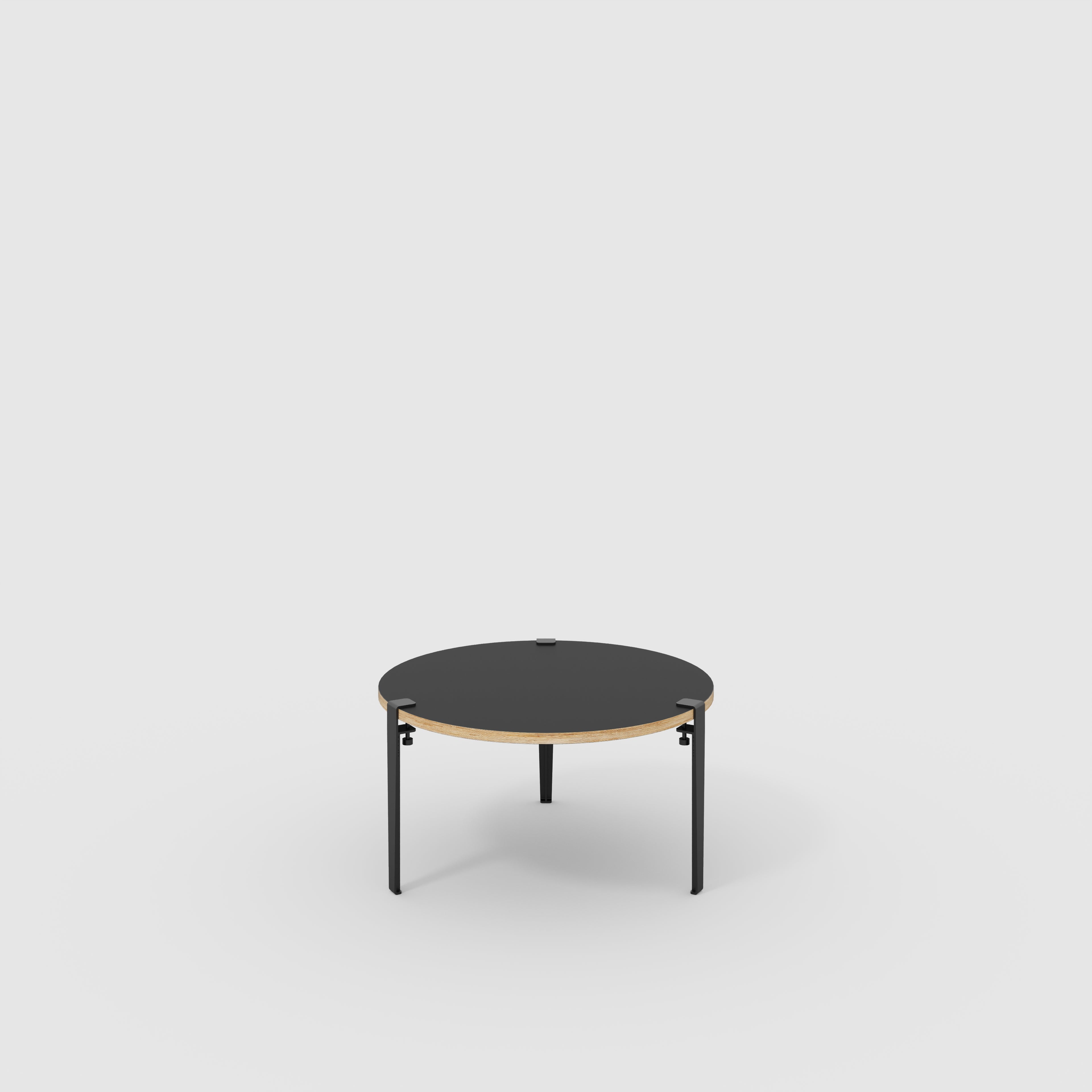 Plywood Round Coffee Table with Black Tiptoe Legs - Formica Diamond Black - 800(dia) x 430(h)