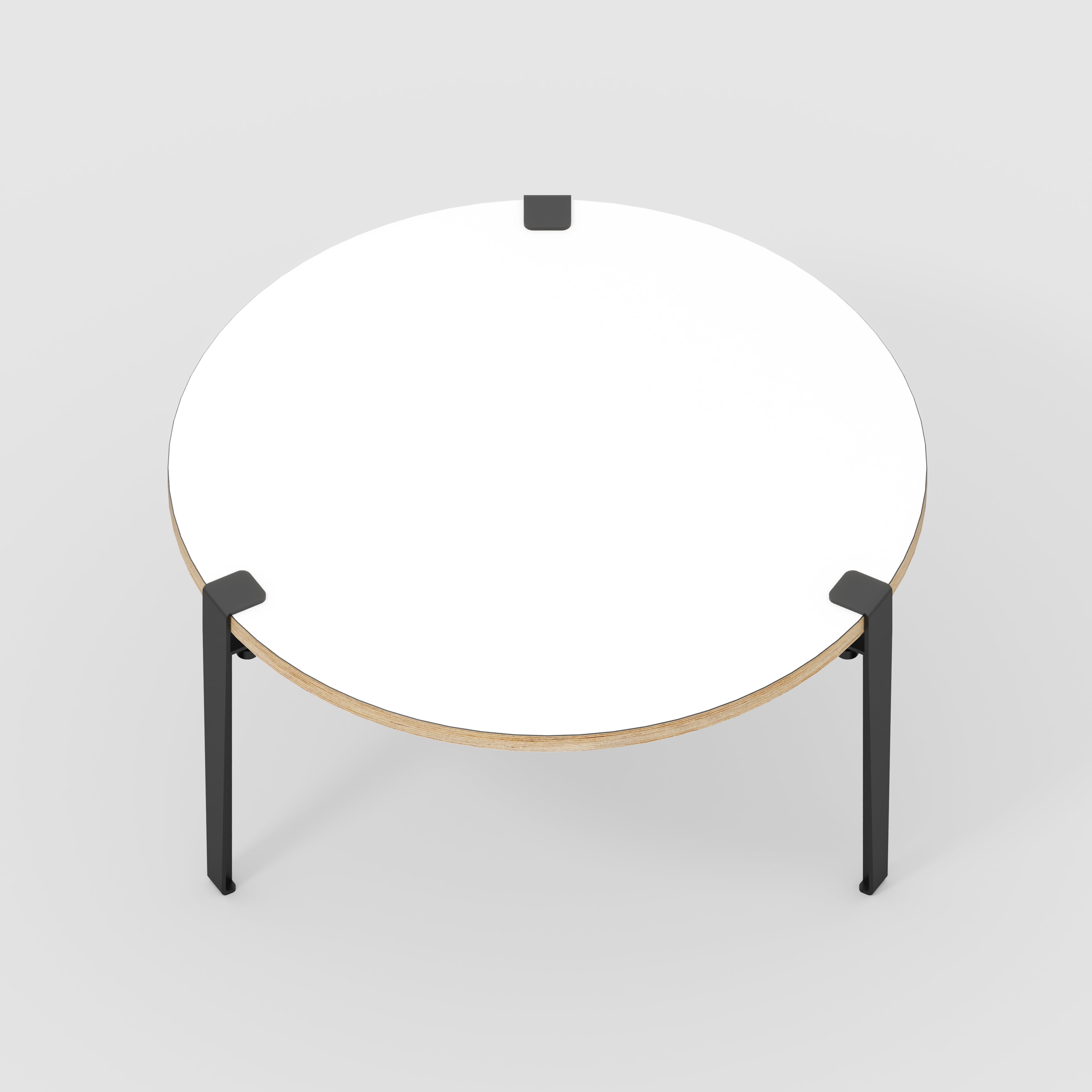 Plywood Round Coffee Table with Black Tiptoe Legs - Formica White - 800(dia) x 430(h)
