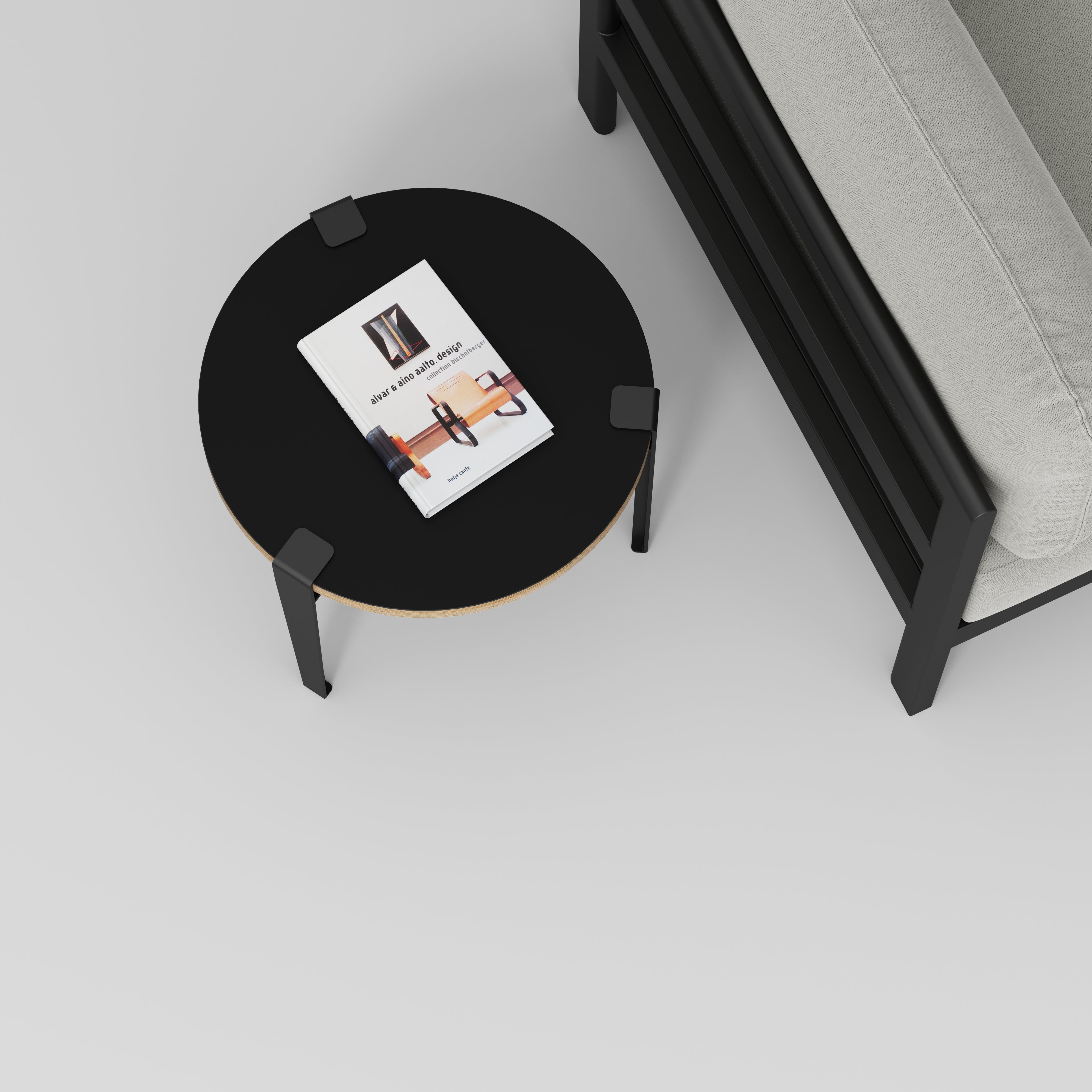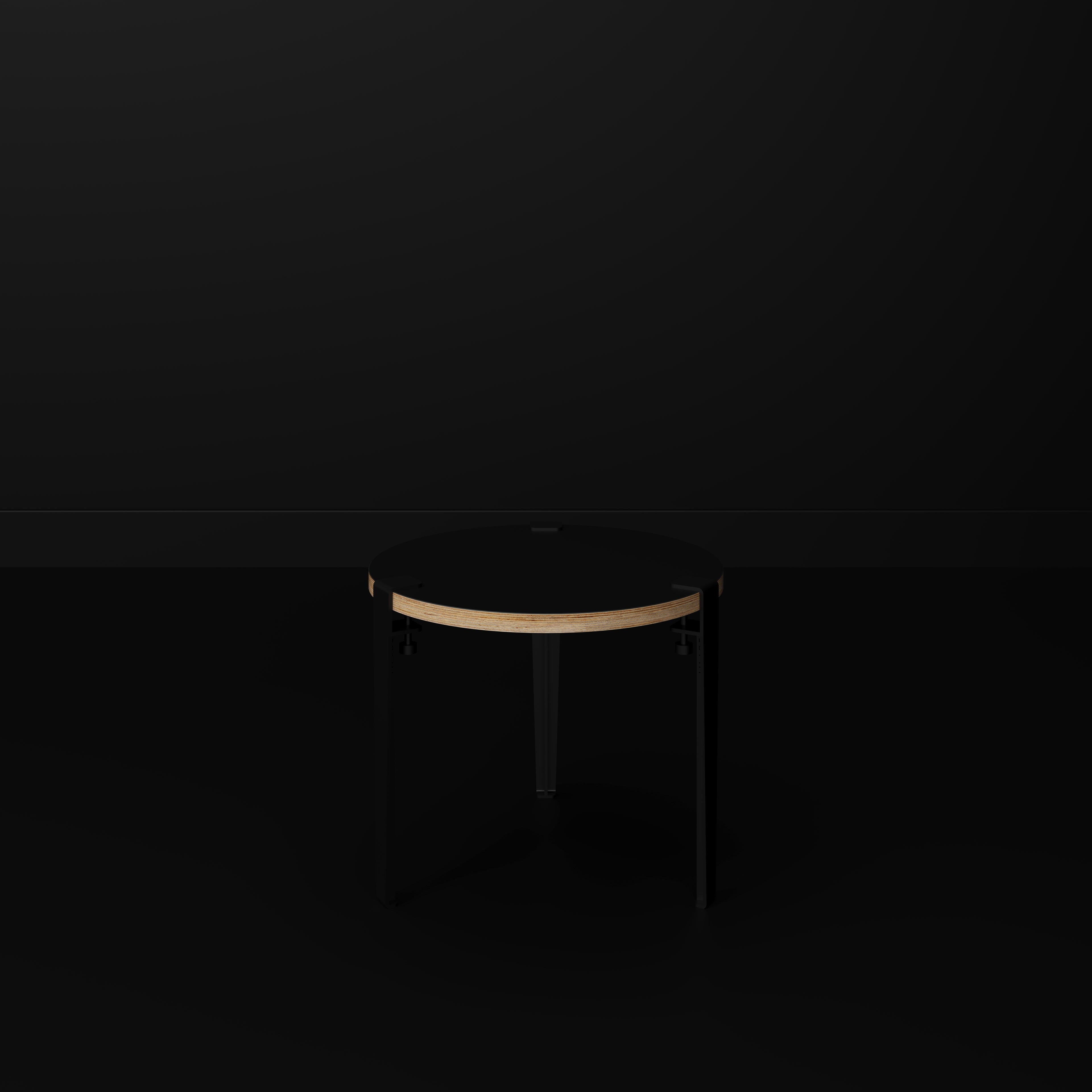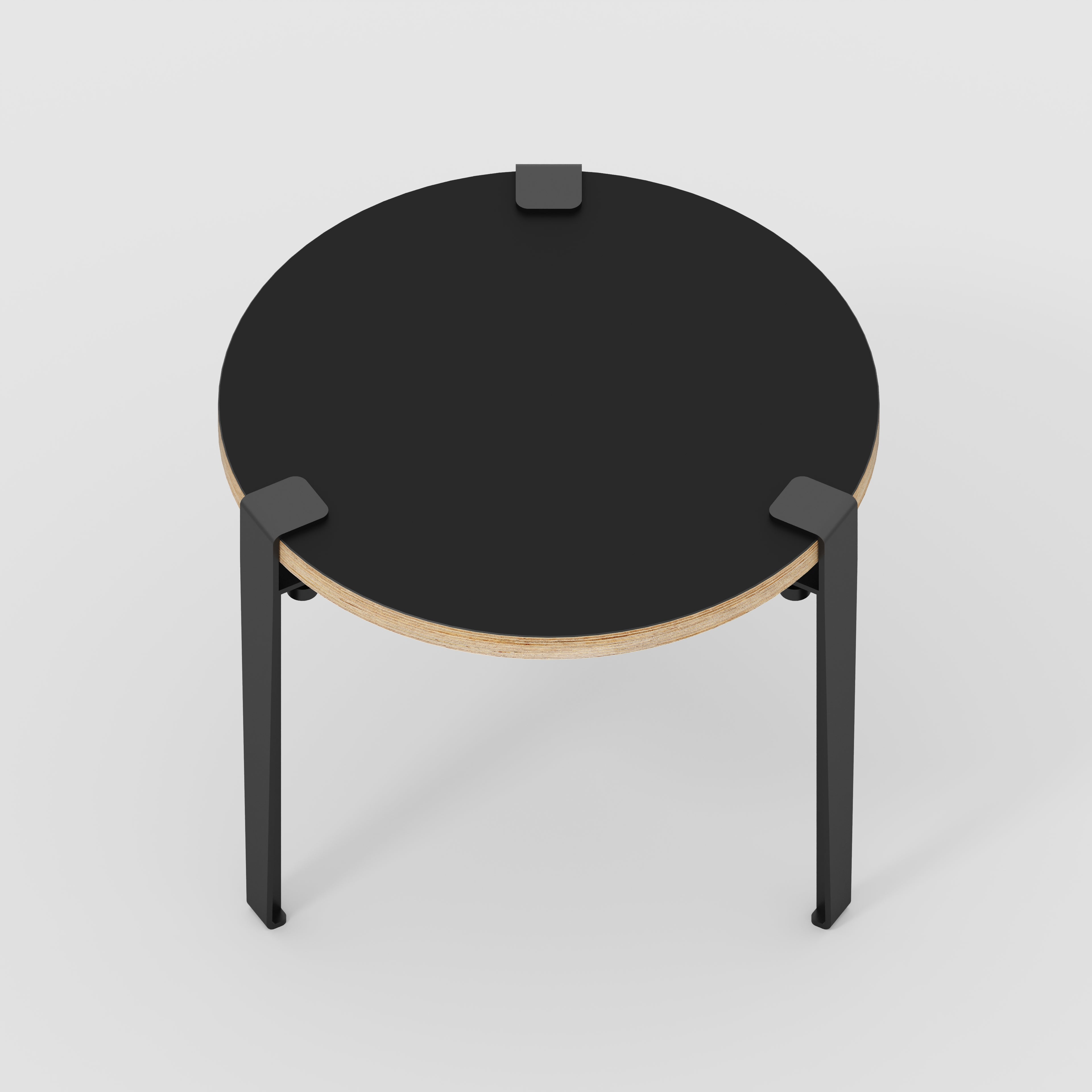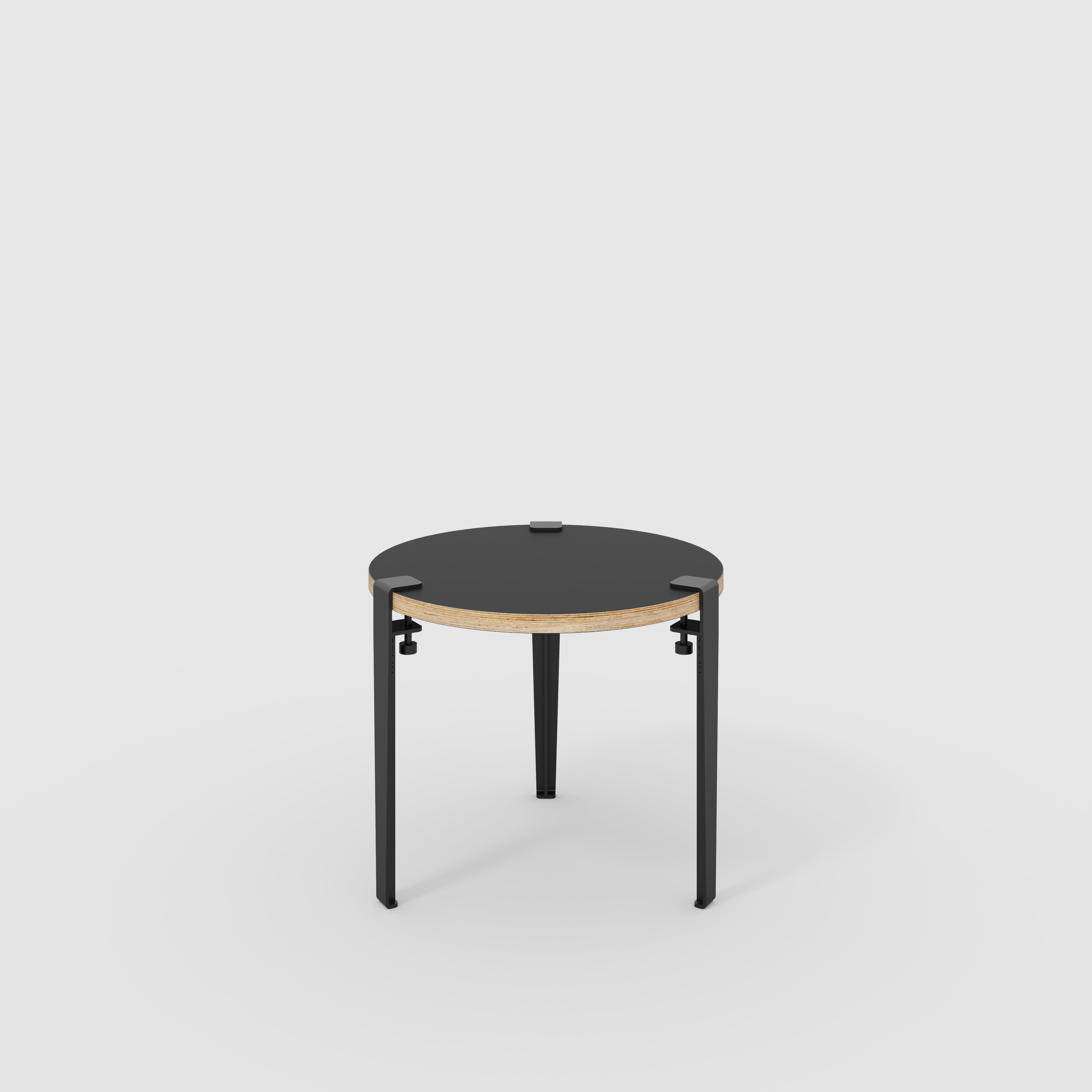 Plywood Round Side Table with Black Tiptoe Legs - Formica Diamond Black - 500(dia) x 430(h)