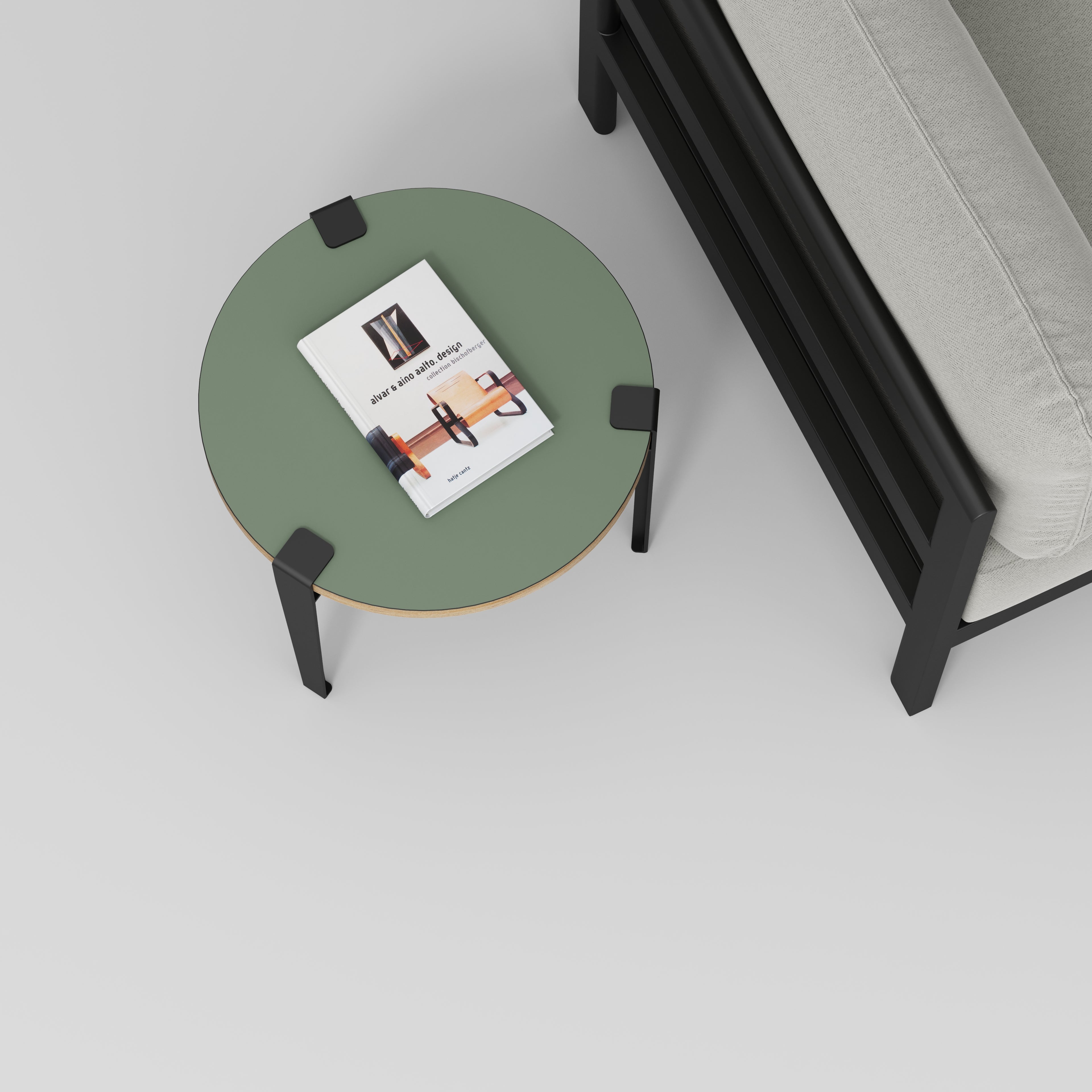 Plywood Round Side Table with Black Tiptoe Legs - Formica Green Slate - 500(dia) x 430(h)