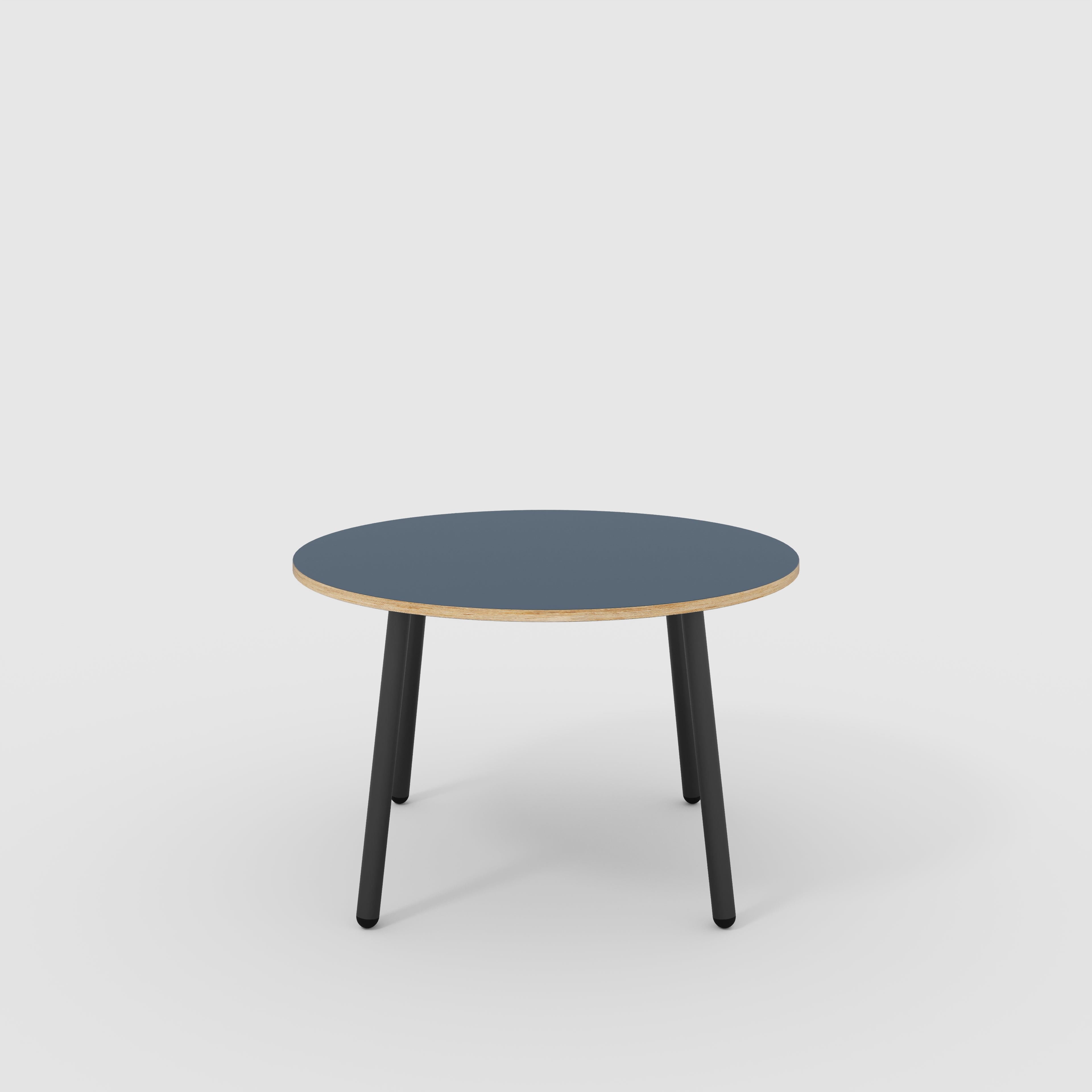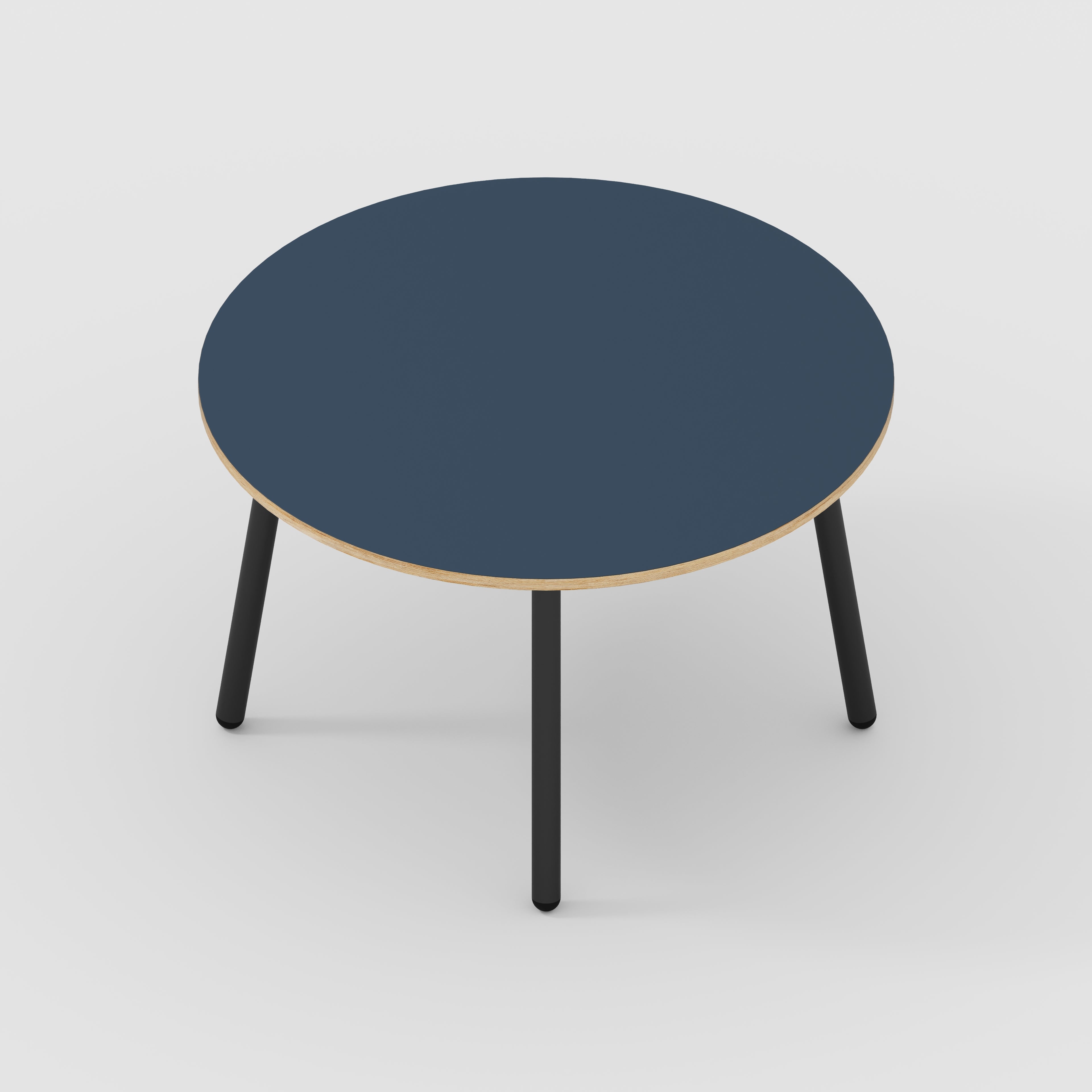 Plywood Round Table with Black Round Single Pin Legs - Formica Night Sea Blue - 1200(dia) x 735(h)