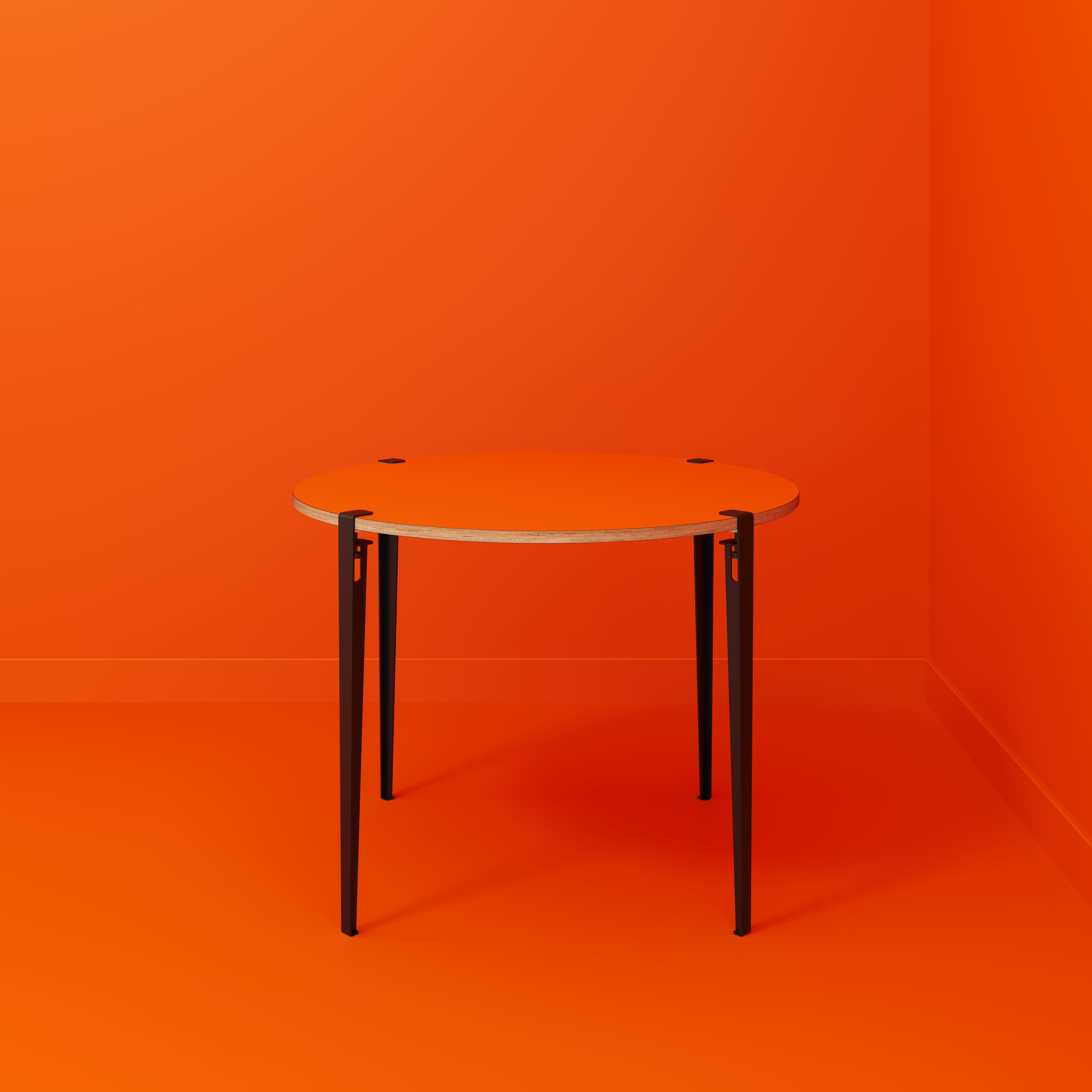 Plywood Round Table with Black Tiptoe Legs - Formica Levante Orange - 1200(dia) x 900(h)