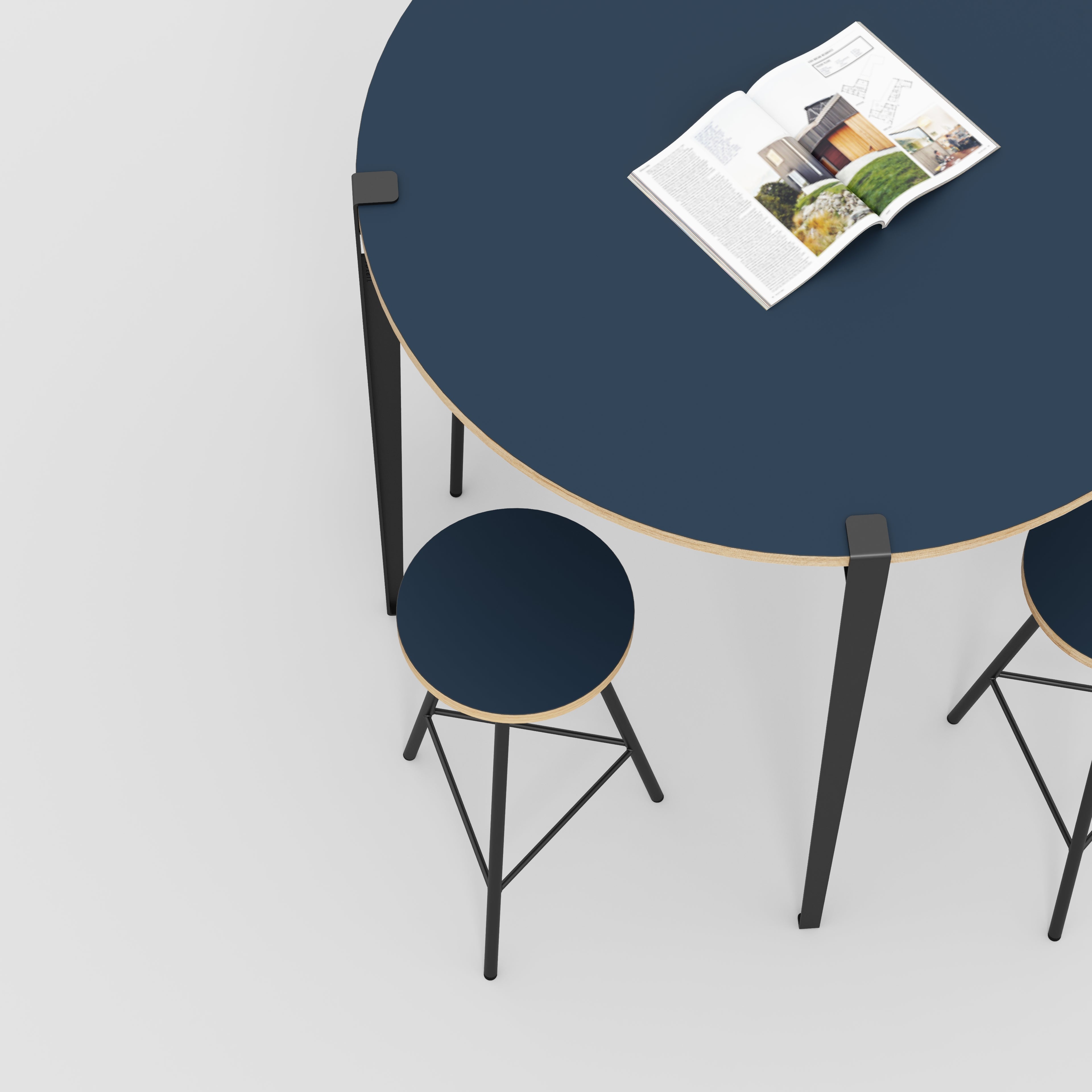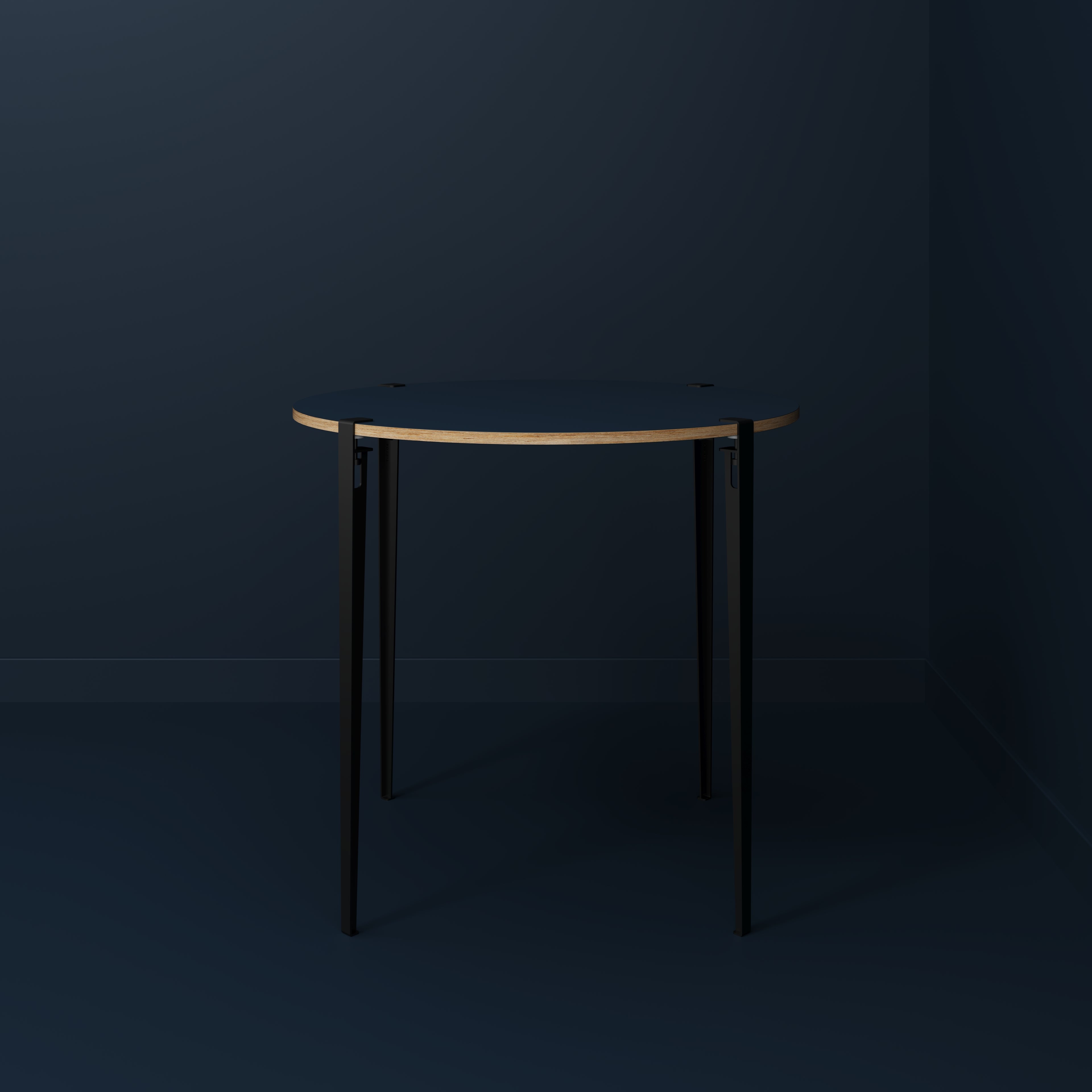 Plywood Round Table with Black Tiptoe Legs - Formica Night Sea Blue - 1200(dia) x 1100(h)