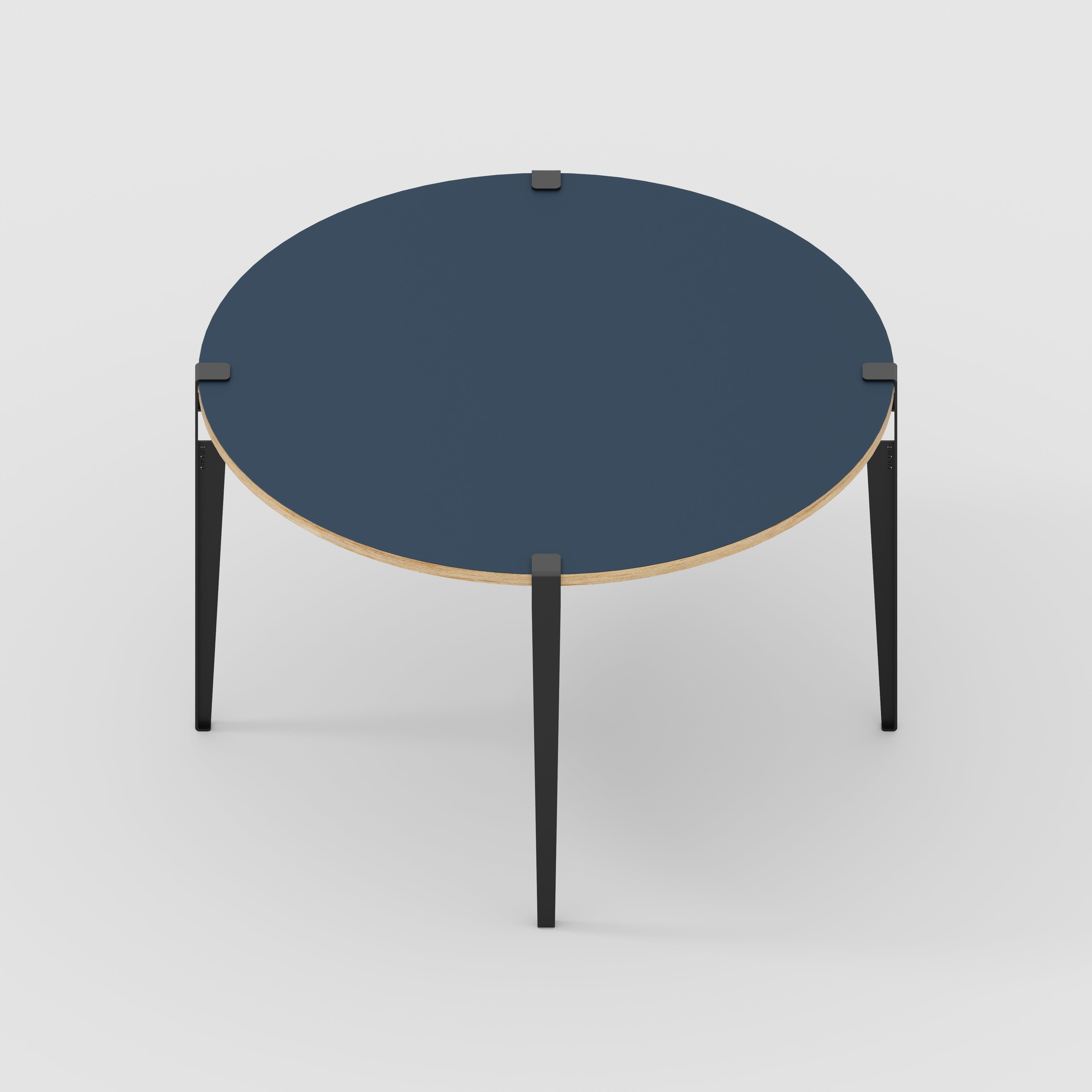 Plywood Round Table with Black Tiptoe Legs - Formica Night Sea Blue - 1200(dia) x 750(h)