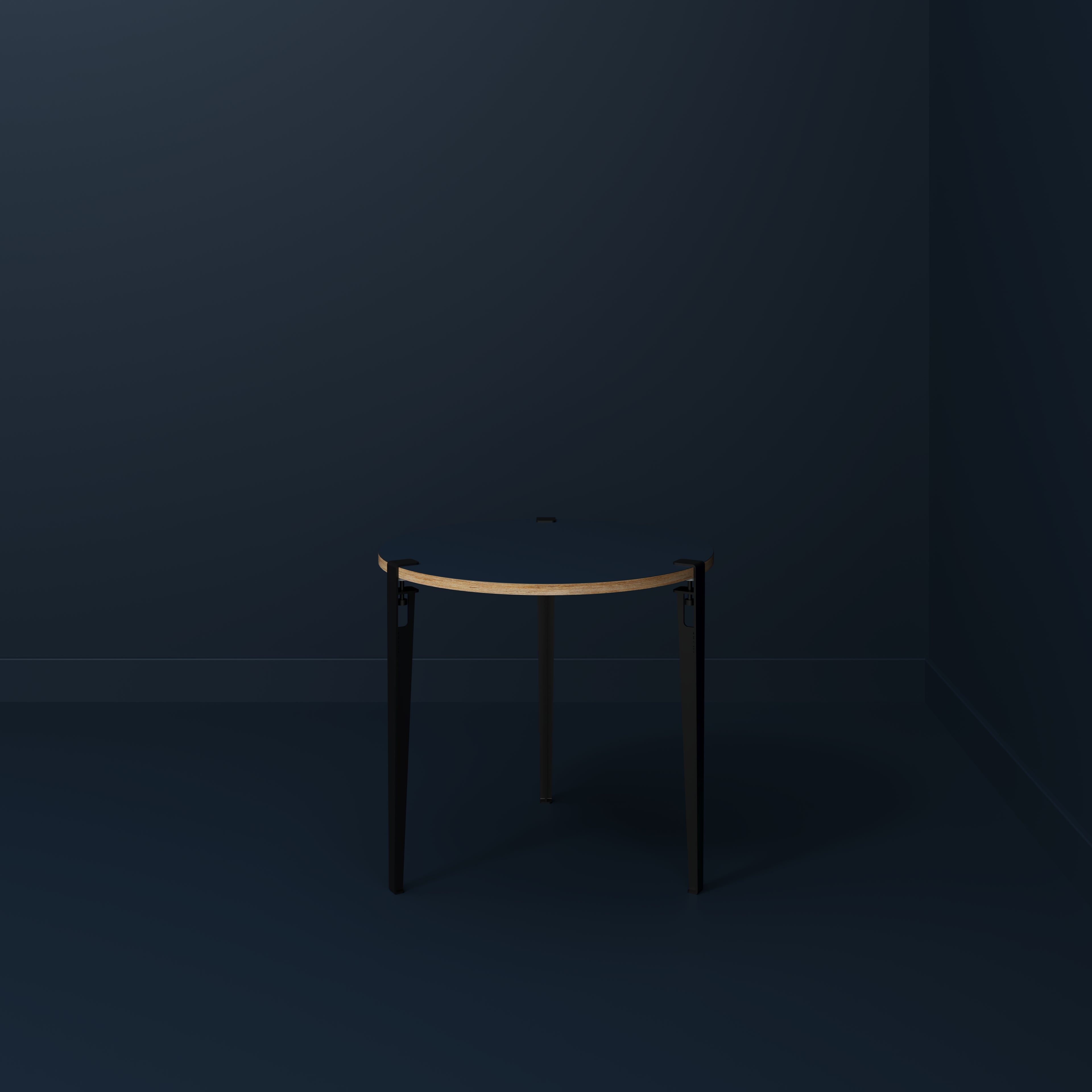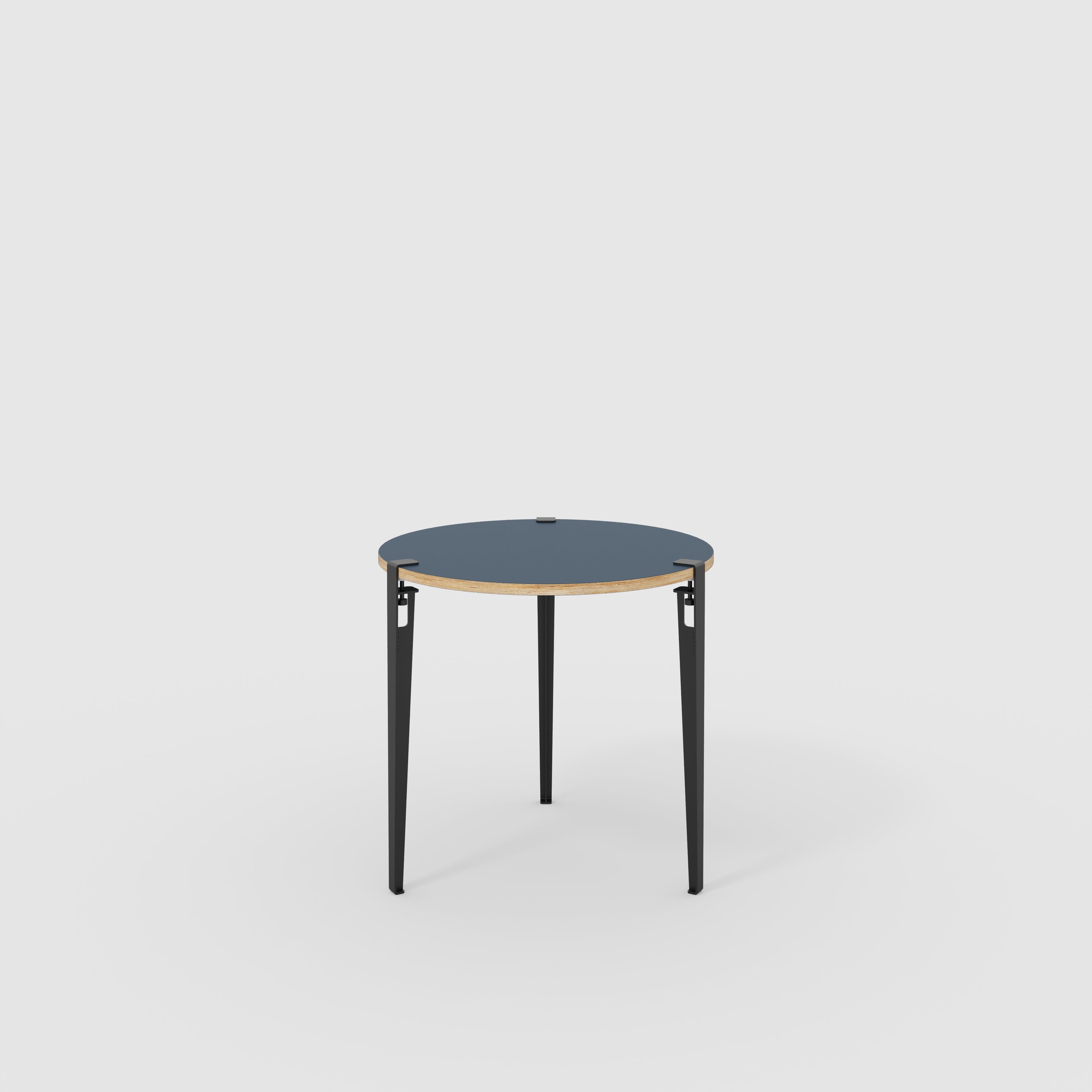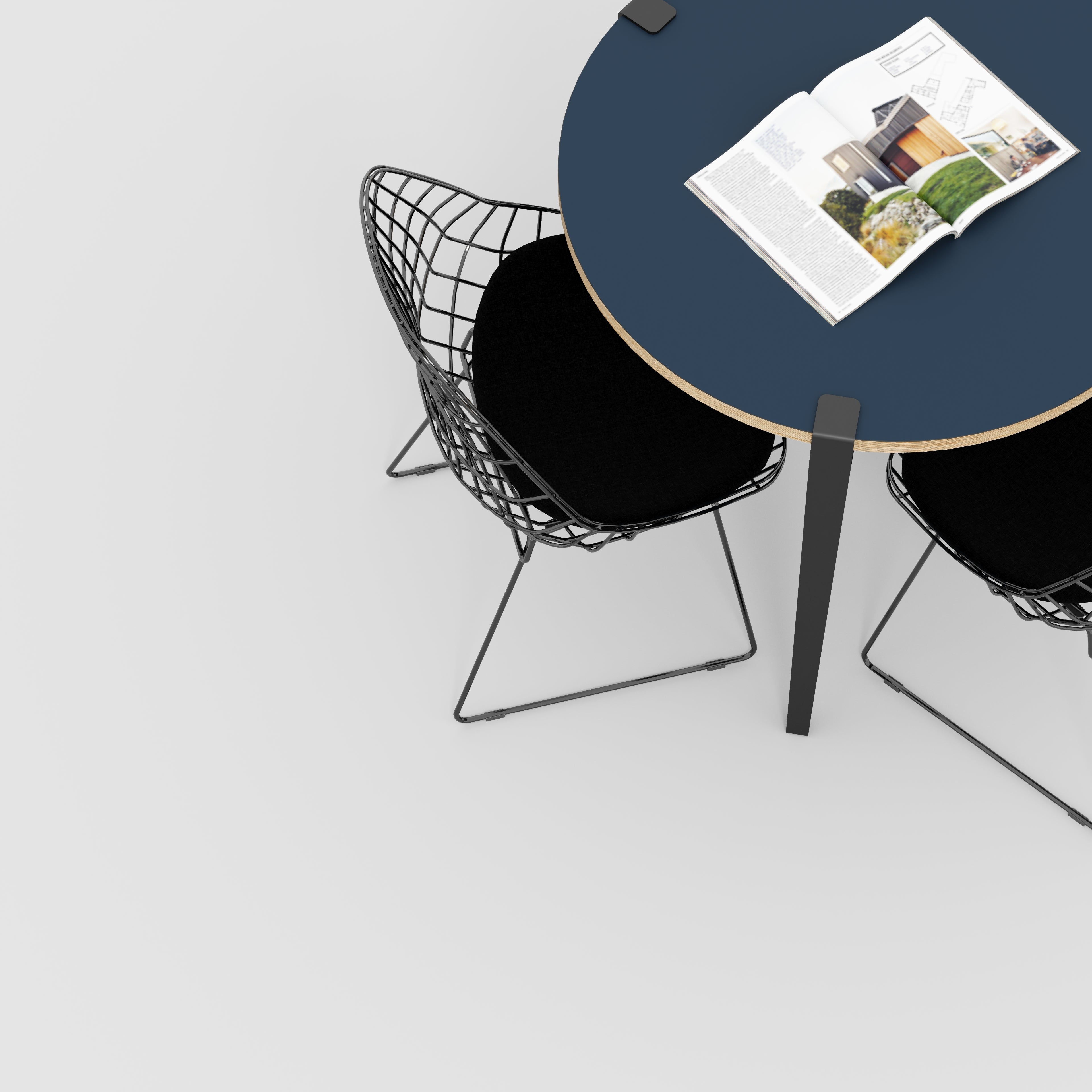 Plywood Round Table with Black Tiptoe Legs - Formica Night Sea Blue - 800(dia) x 750(h)