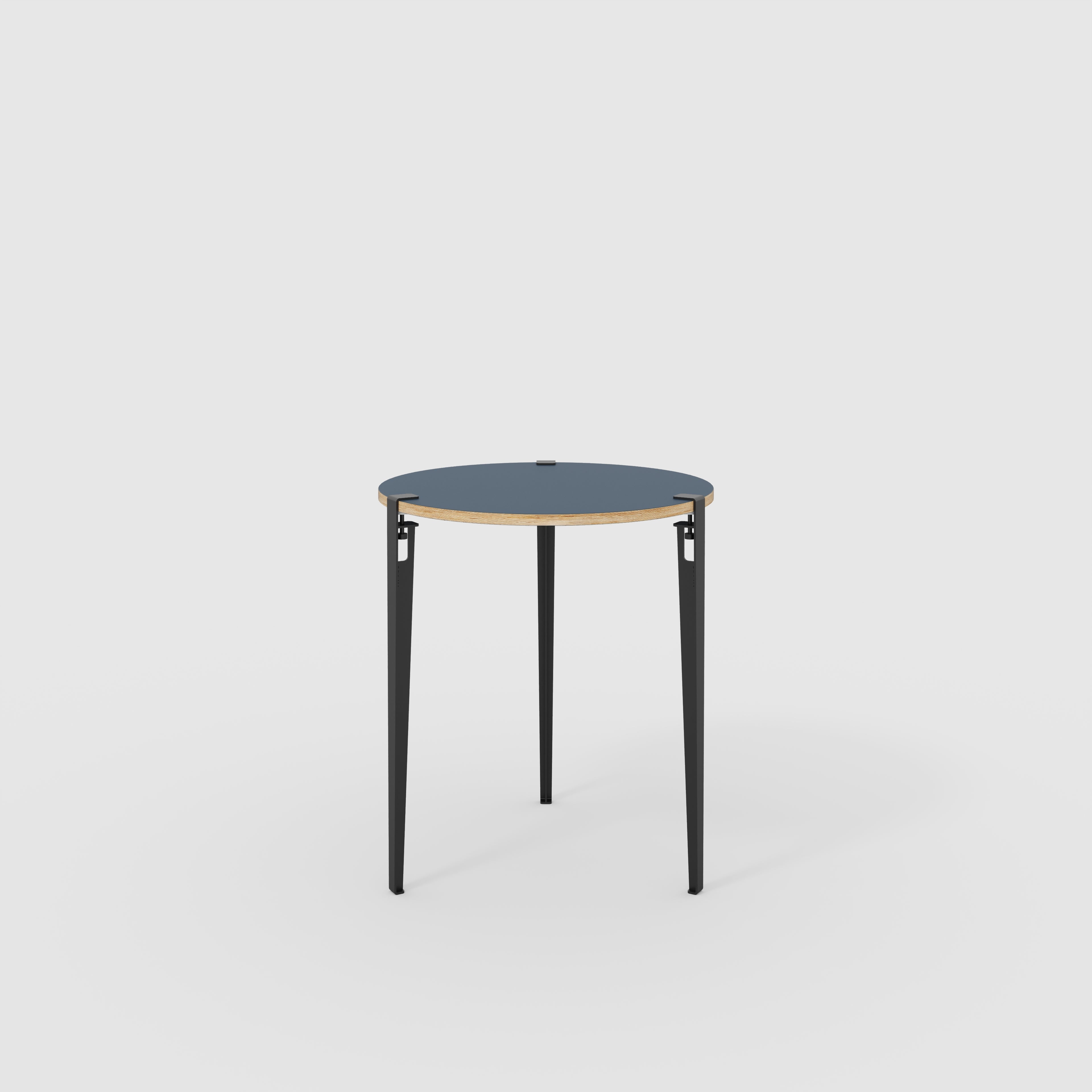Plywood Round Table with Black Tiptoe Legs - Formica Night Sea Blue - 800(dia) x 900(h)