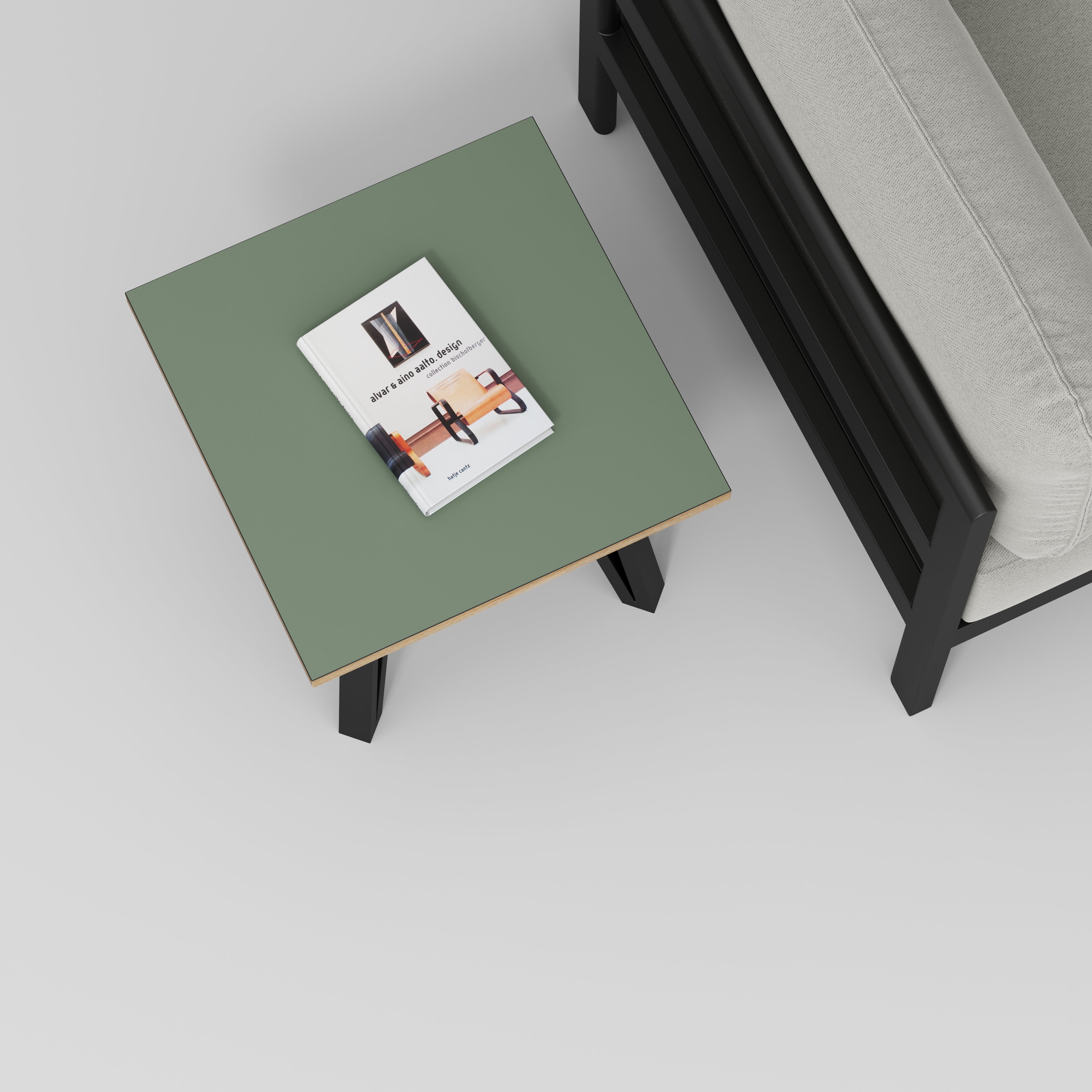 Plywood Side Table with Black Box Hairpin Legs - Formica Green Slate - 500(w) x 500(d) x 425(h)