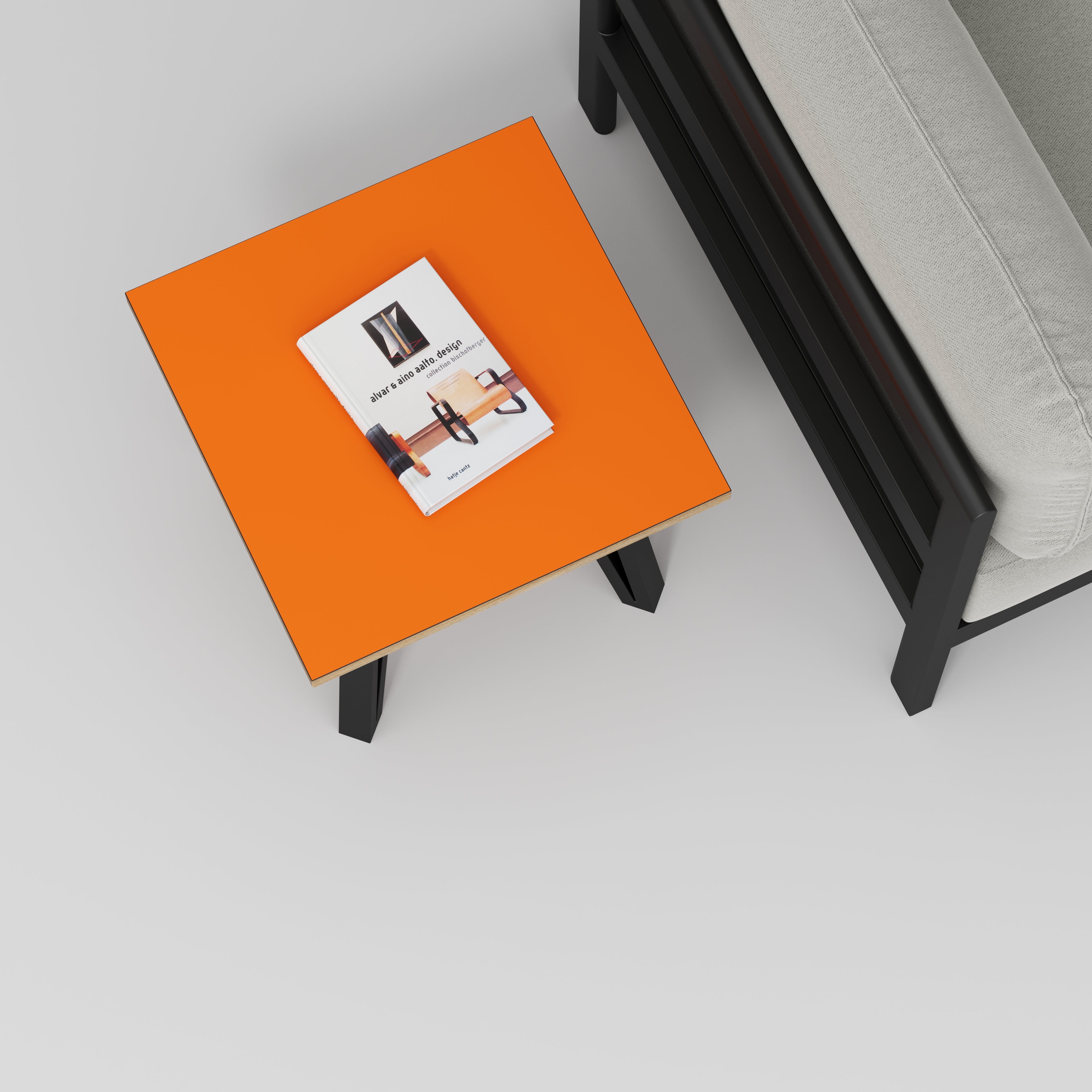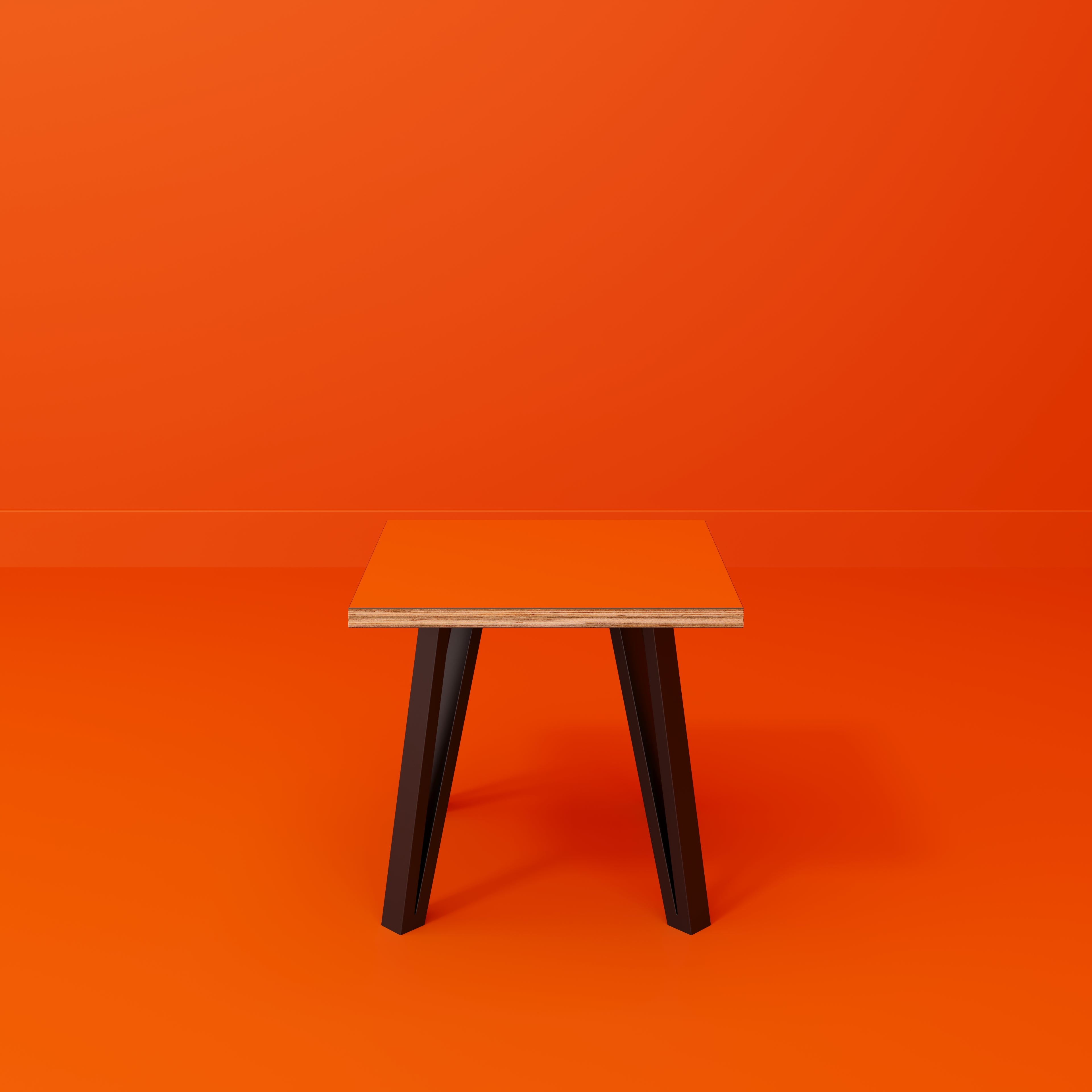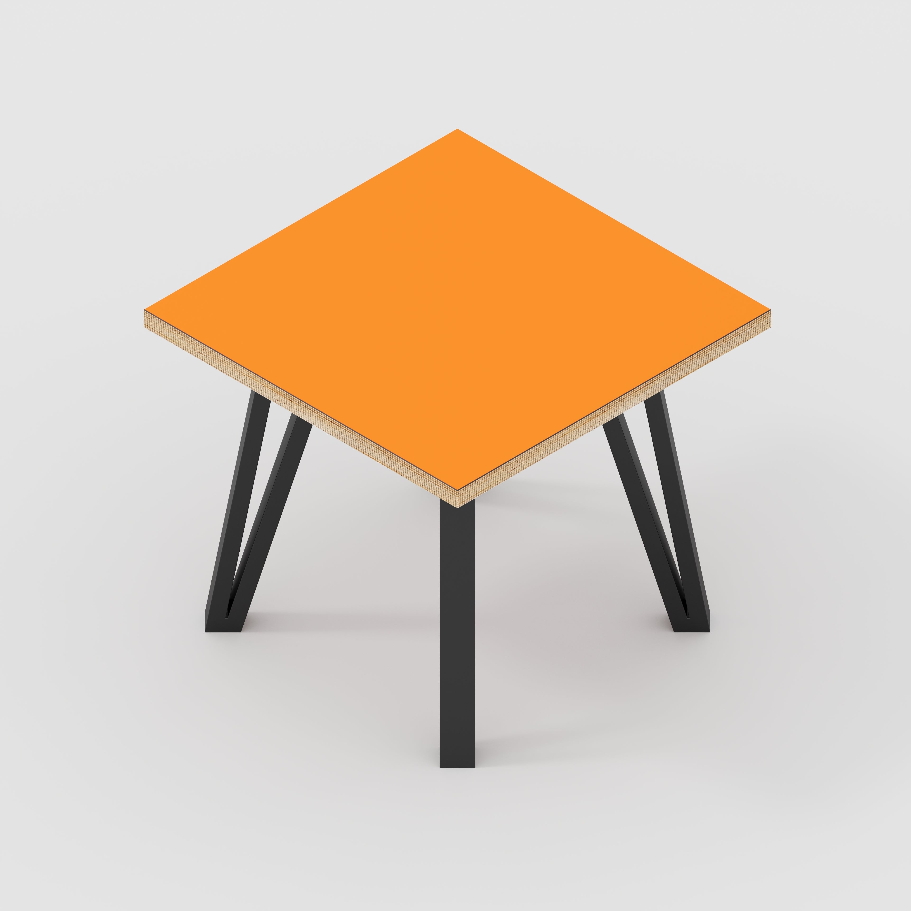 Plywood Side Table with Black Box Hairpin Legs - Formica Levante Orange - 500(w) x 500(d) x 425(h)