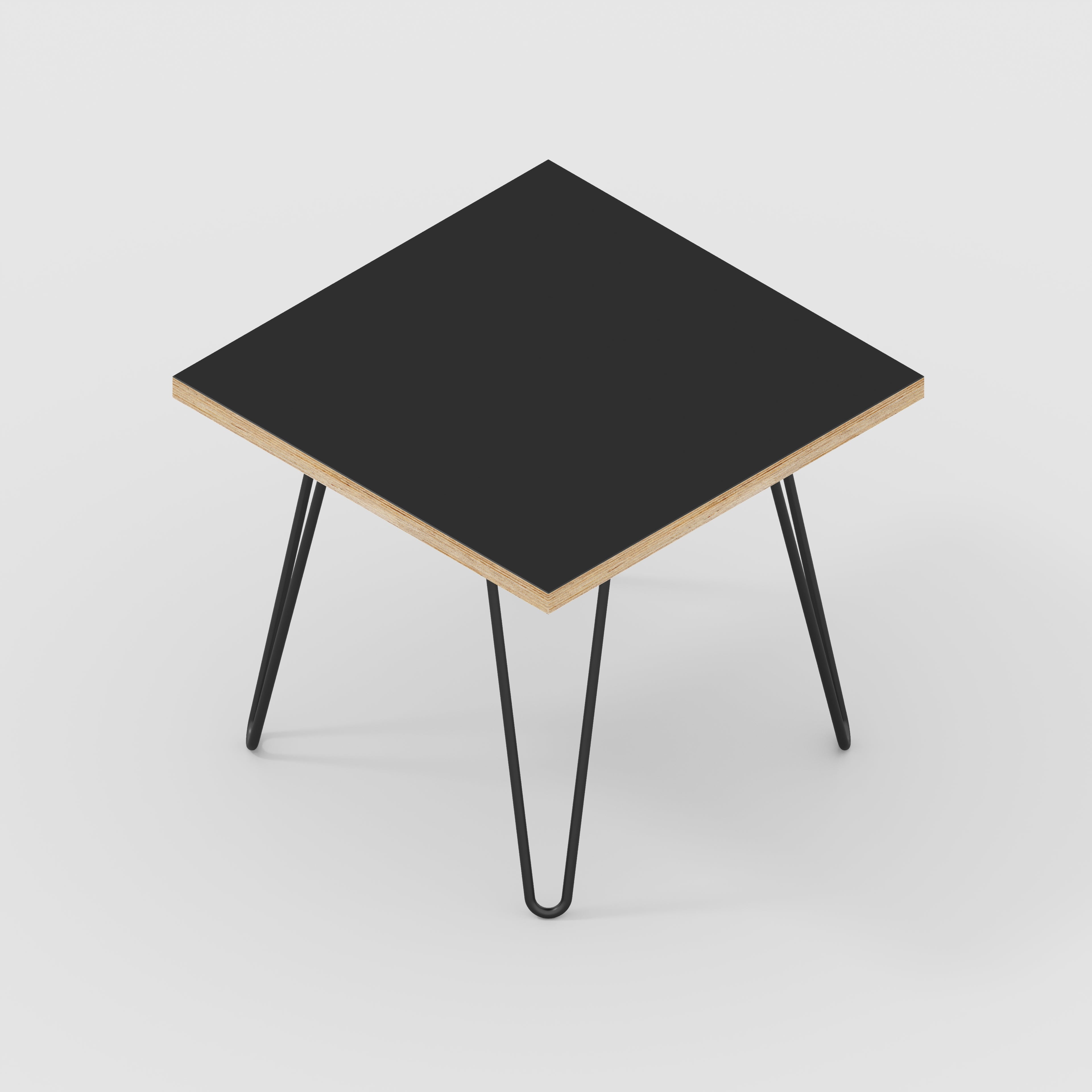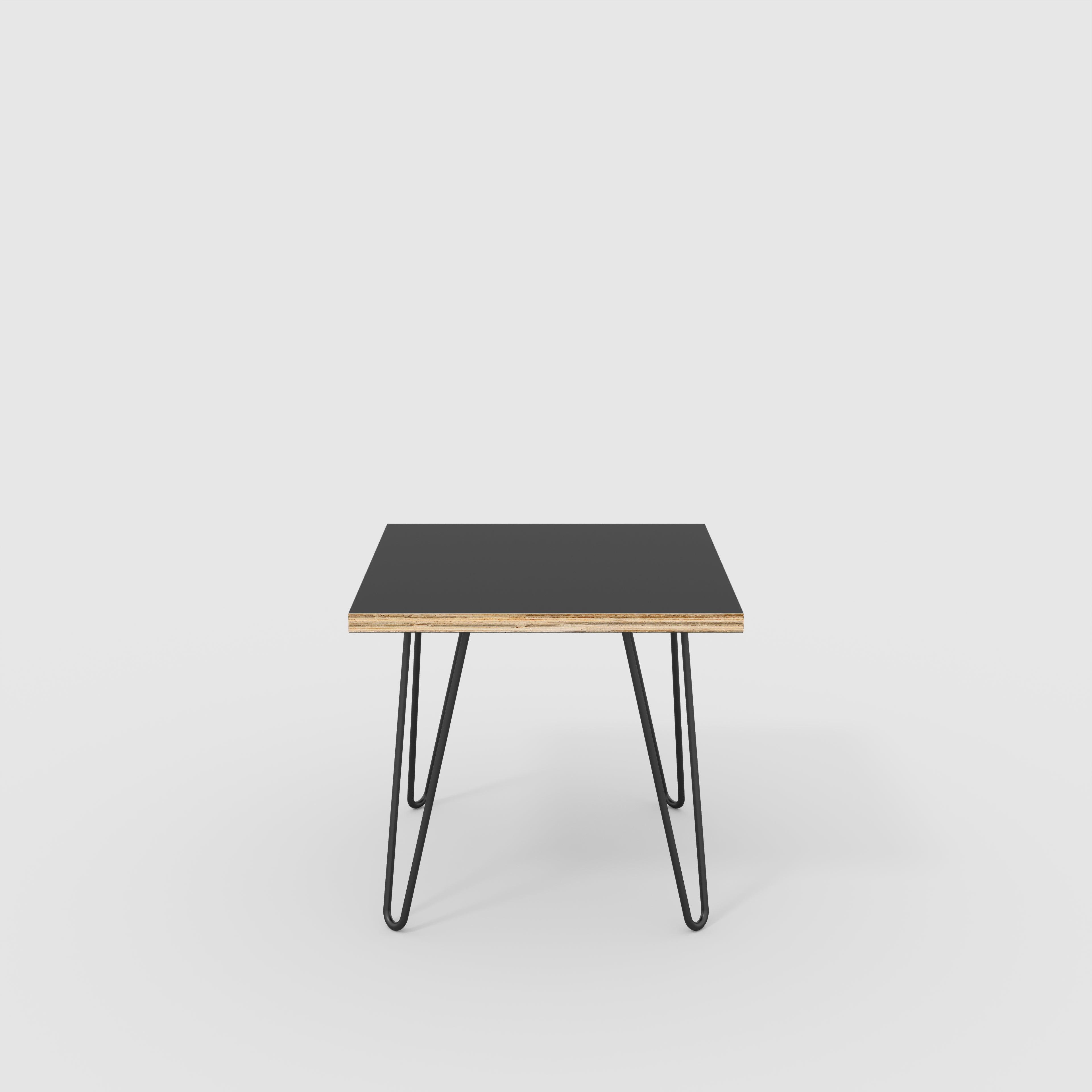 Plywood Side Table with Black Hairpin Legs - Formica Diamond Black - 500(w) x 500(d) x 425(h)