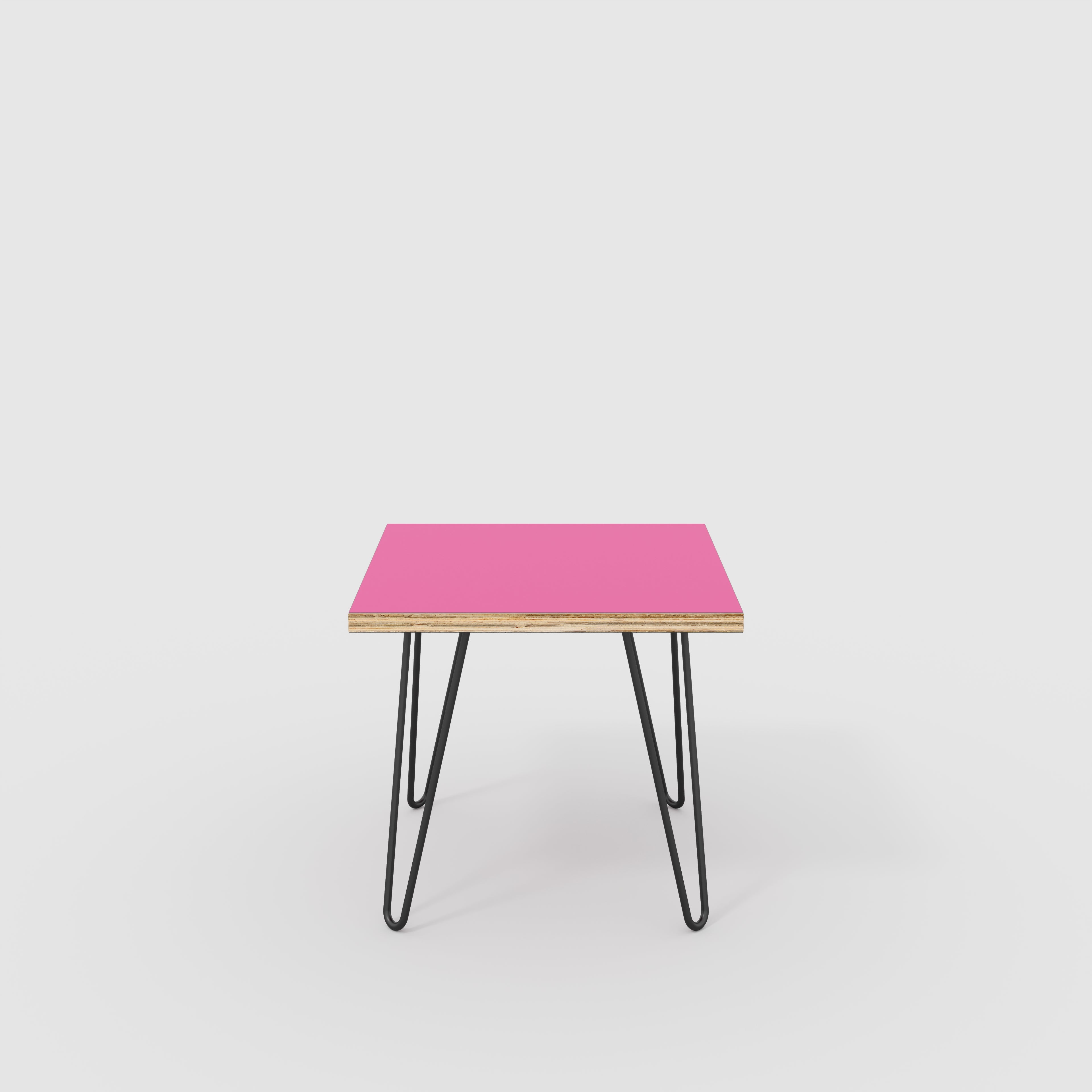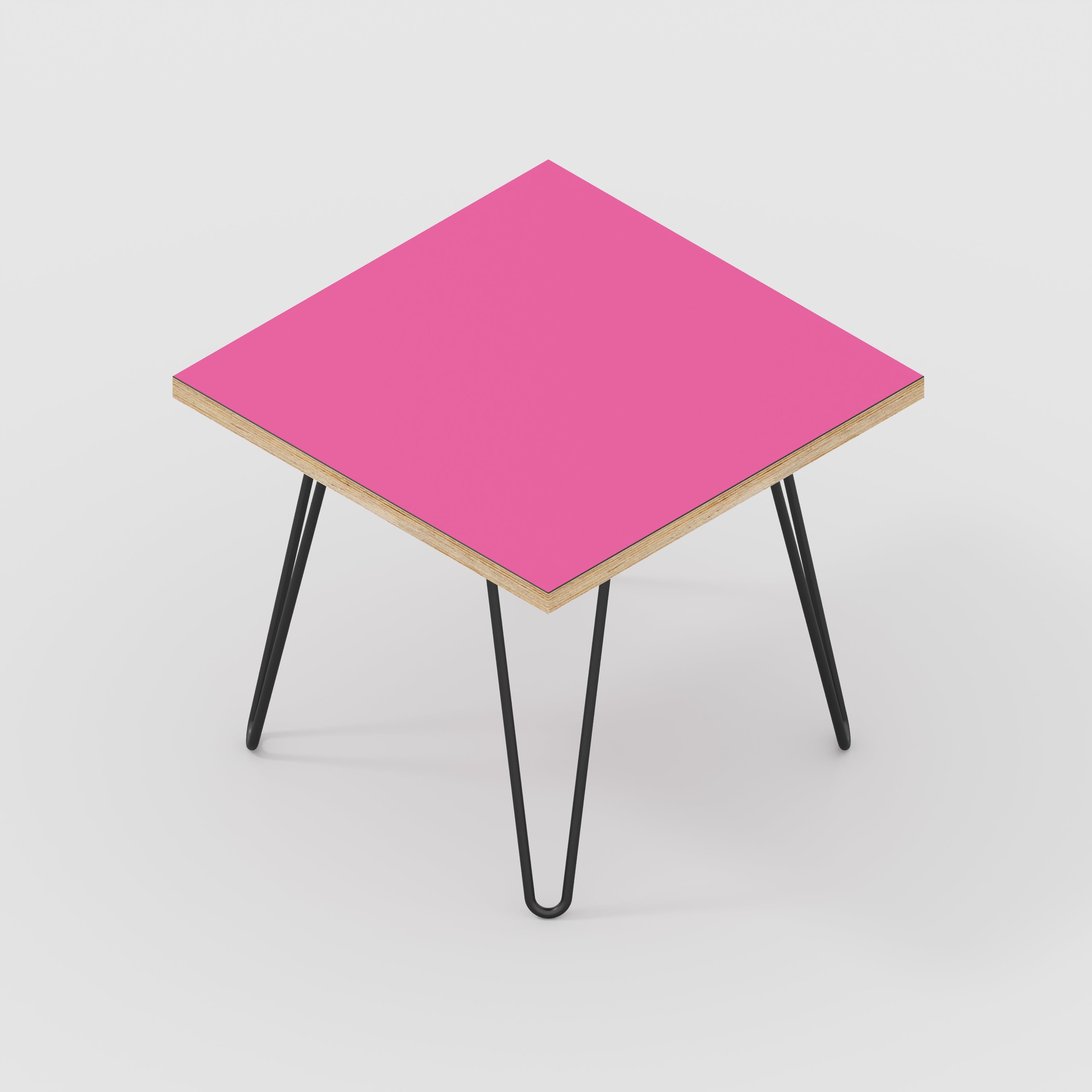 Plywood Side Table with Black Hairpin Legs - Formica Juicy Pink - 500(w) x 500(d) x 425(h)