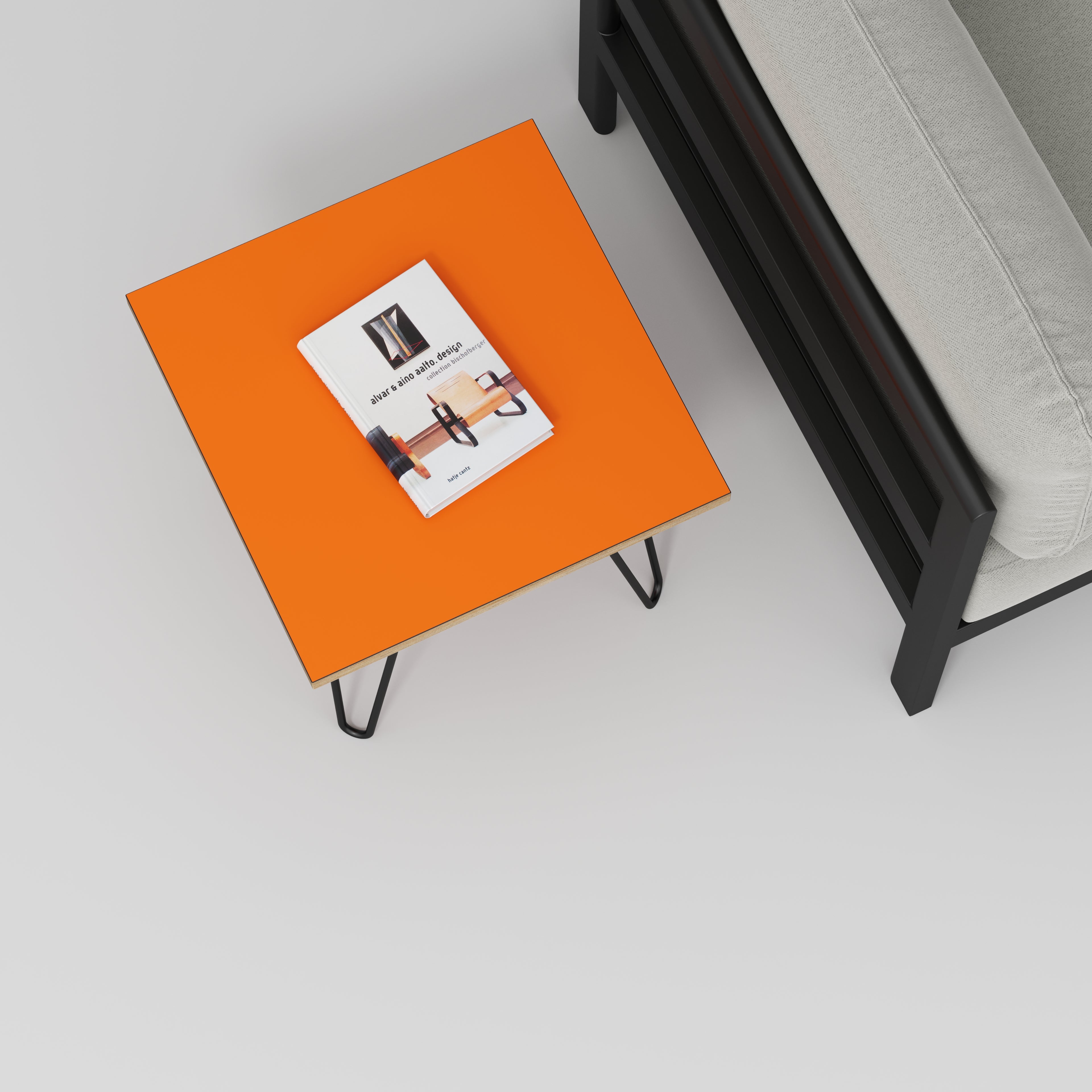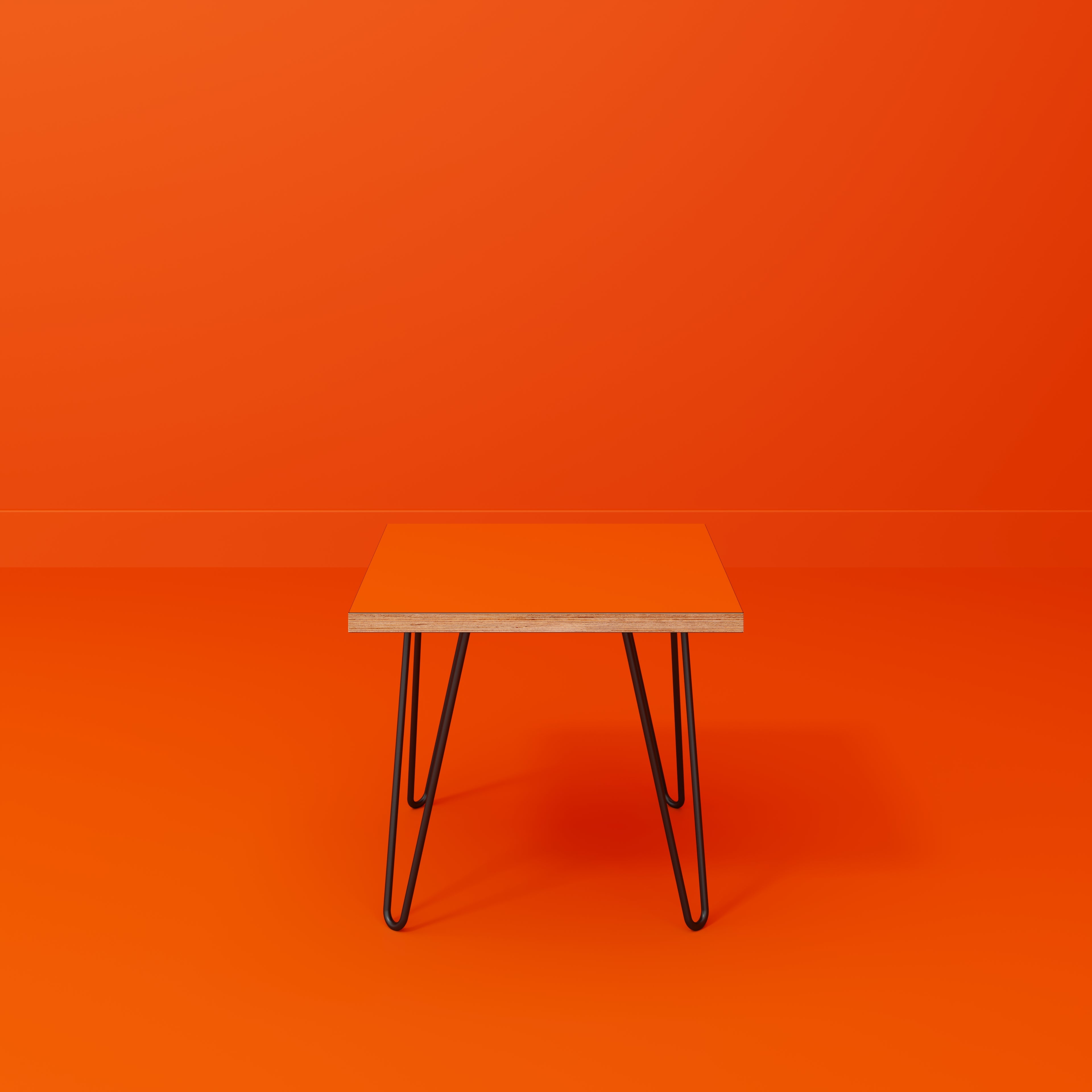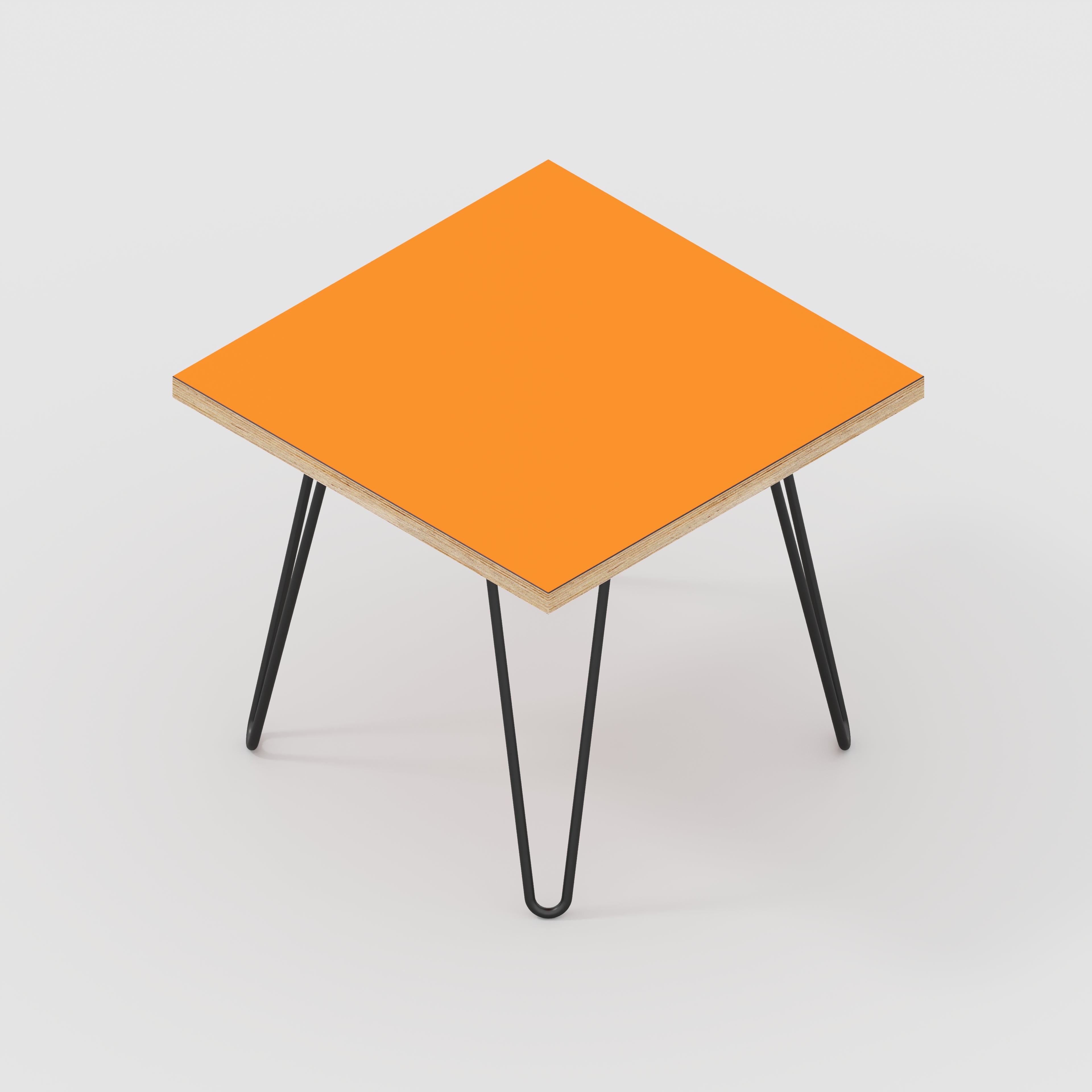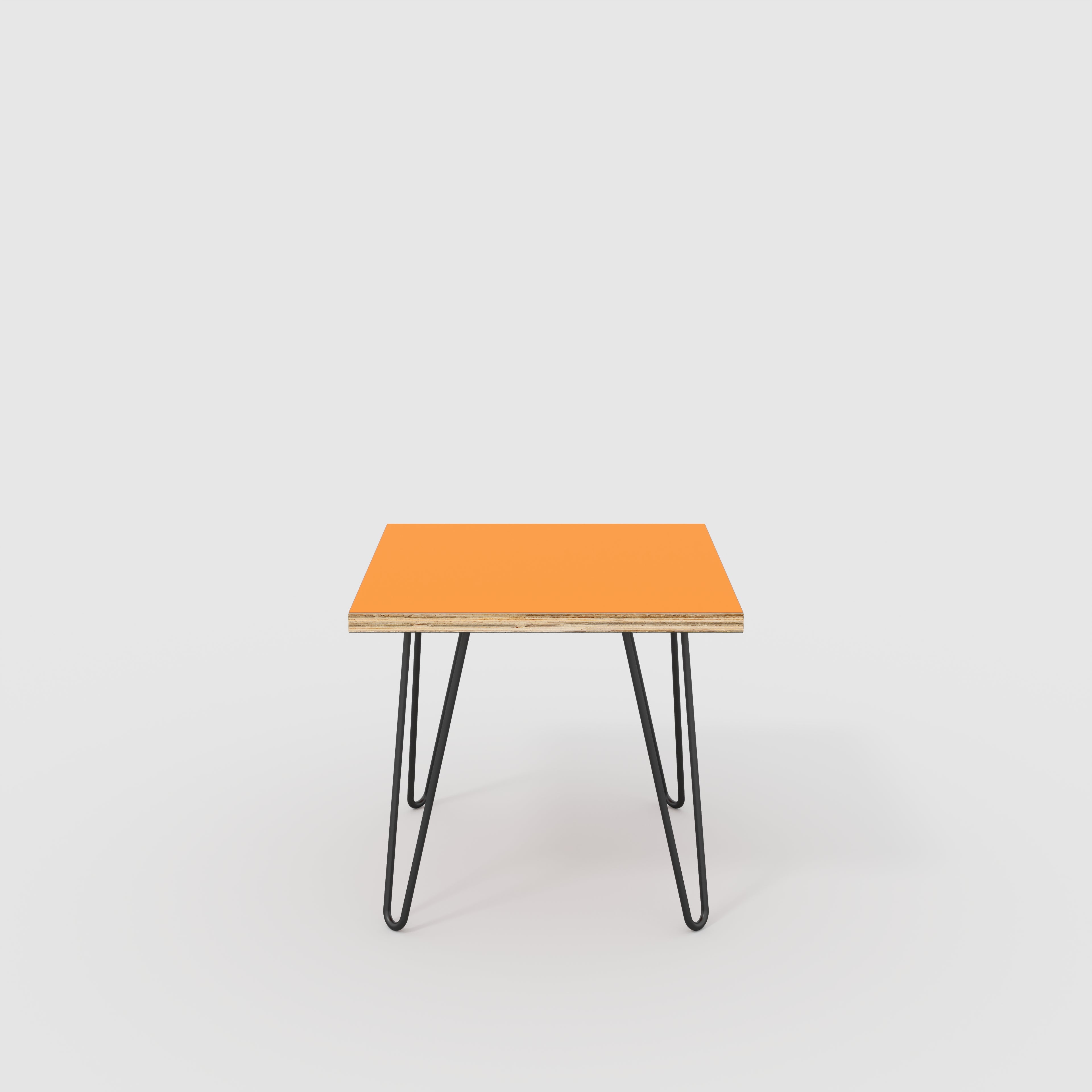 Plywood Side Table with Black Hairpin Legs - Formica Levante Orange - 500(w) x 500(d) x 425(h)