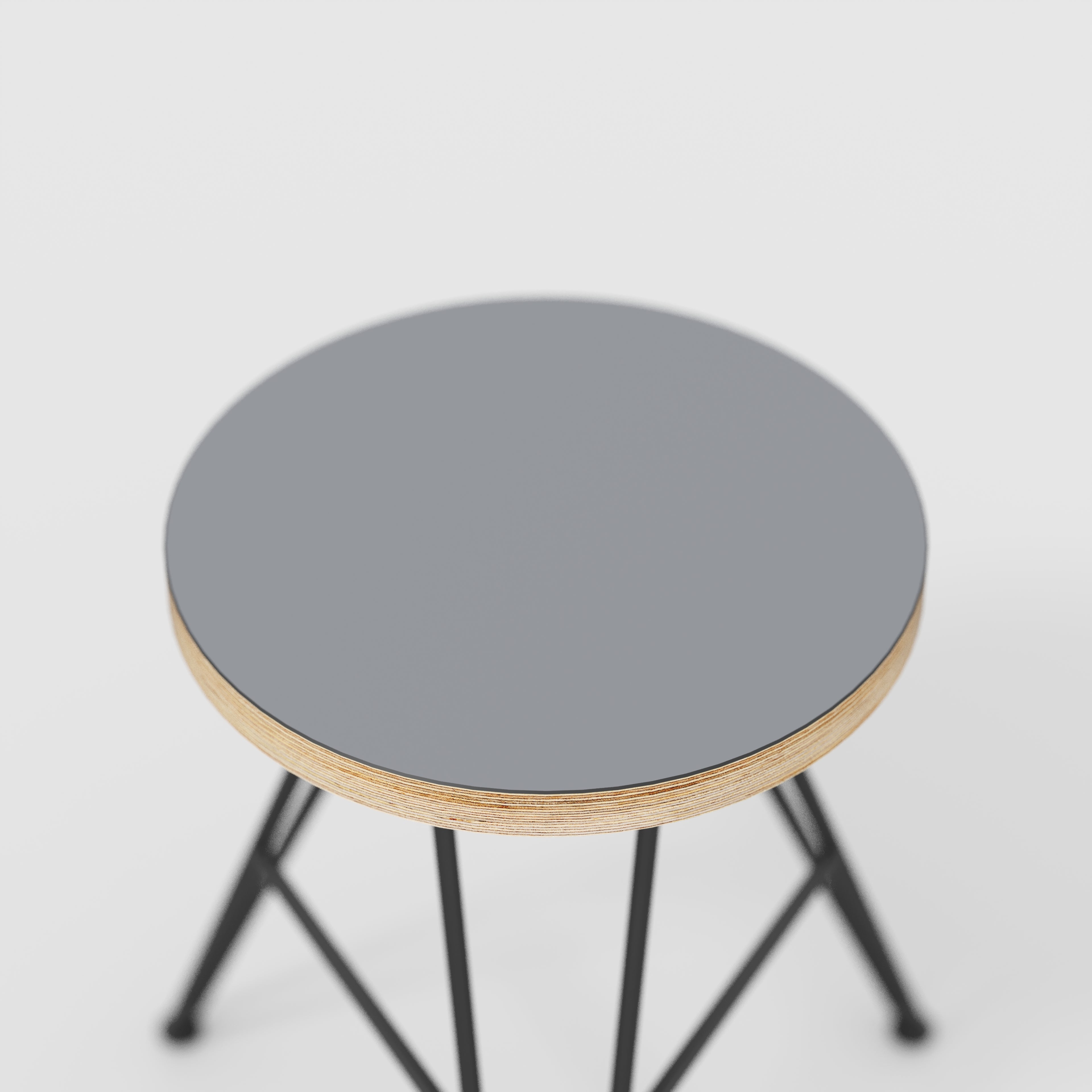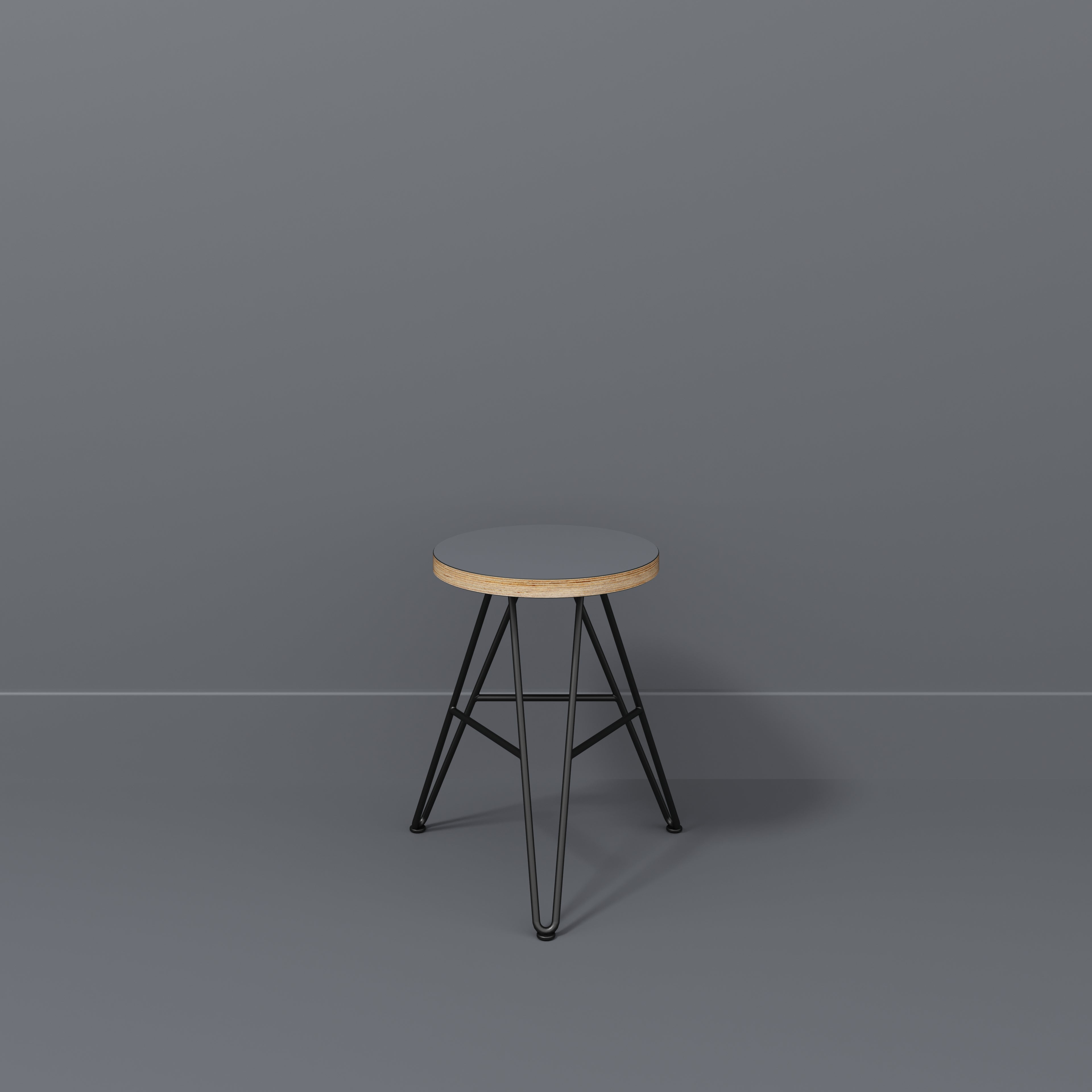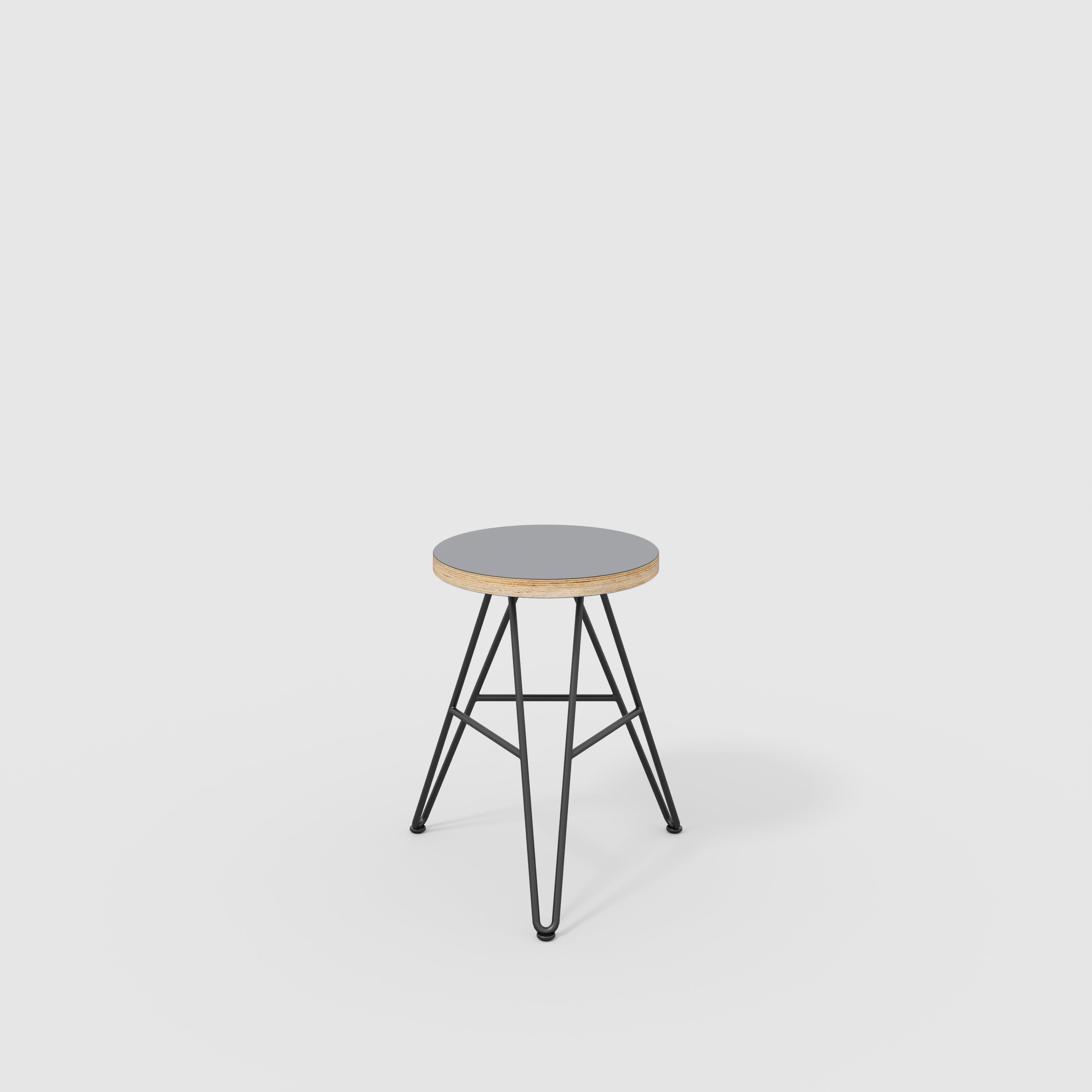 Plywood Stool with Black Hairpin Base - Formica Tornado Grey