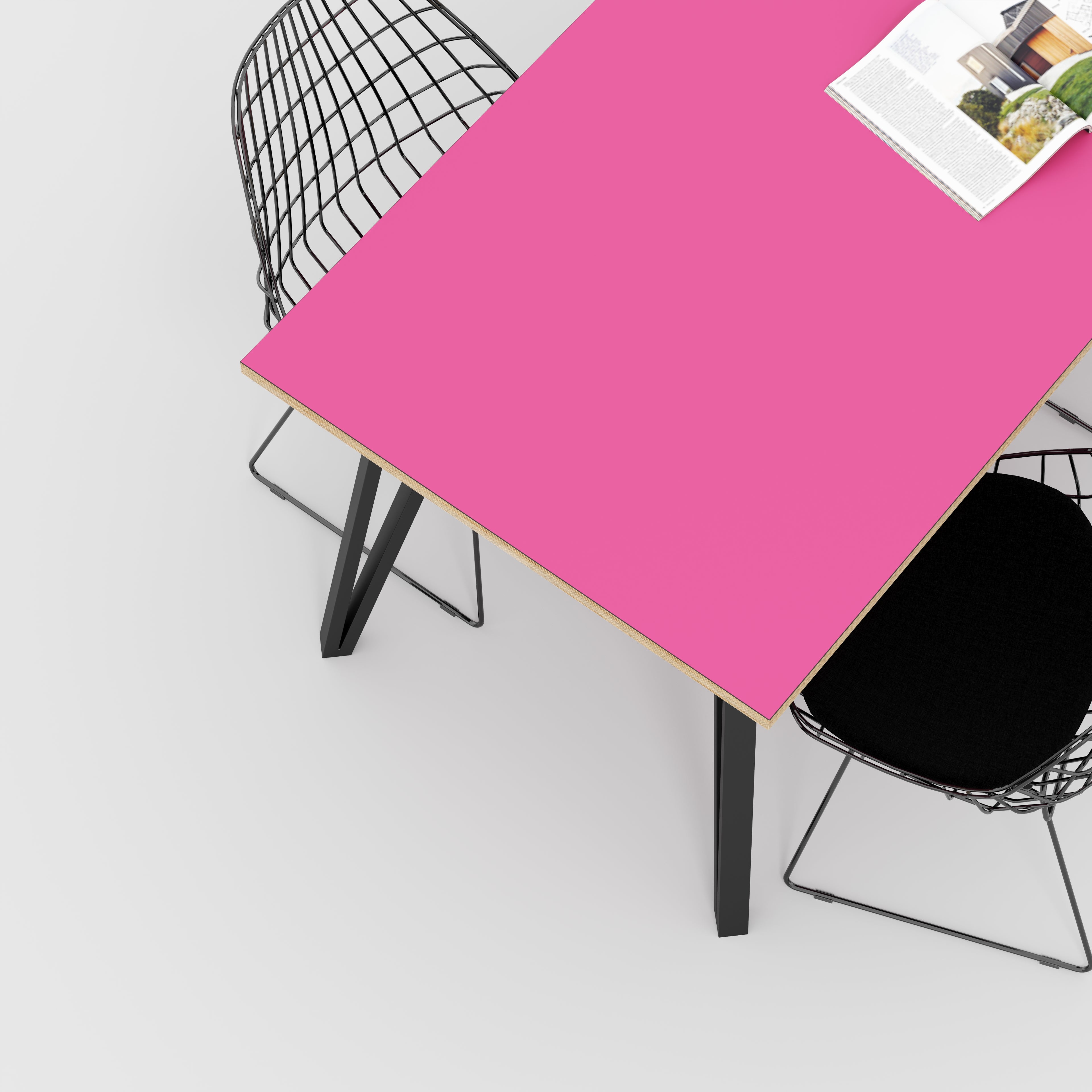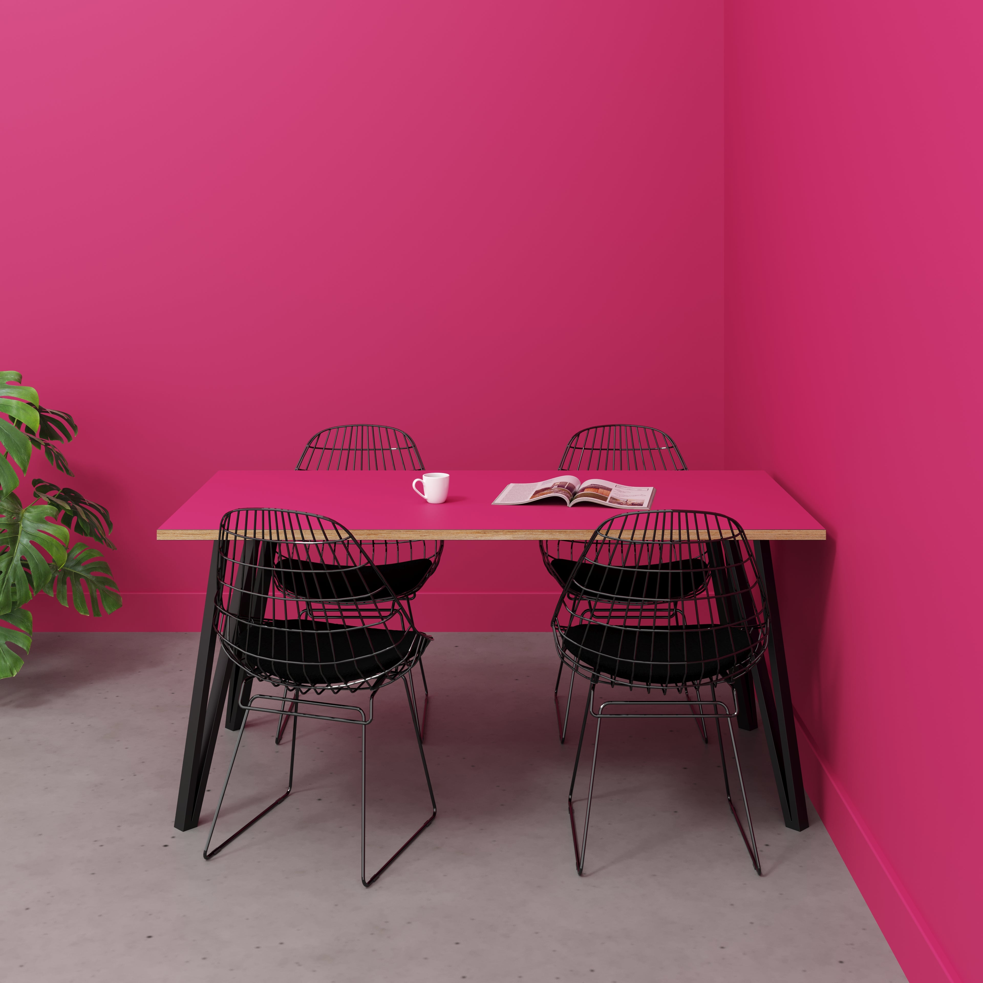 Plywood Table with Black Box Hairpin Legs - Formica Juicy Pink - 1600(w) x 800(d) x 735(h)