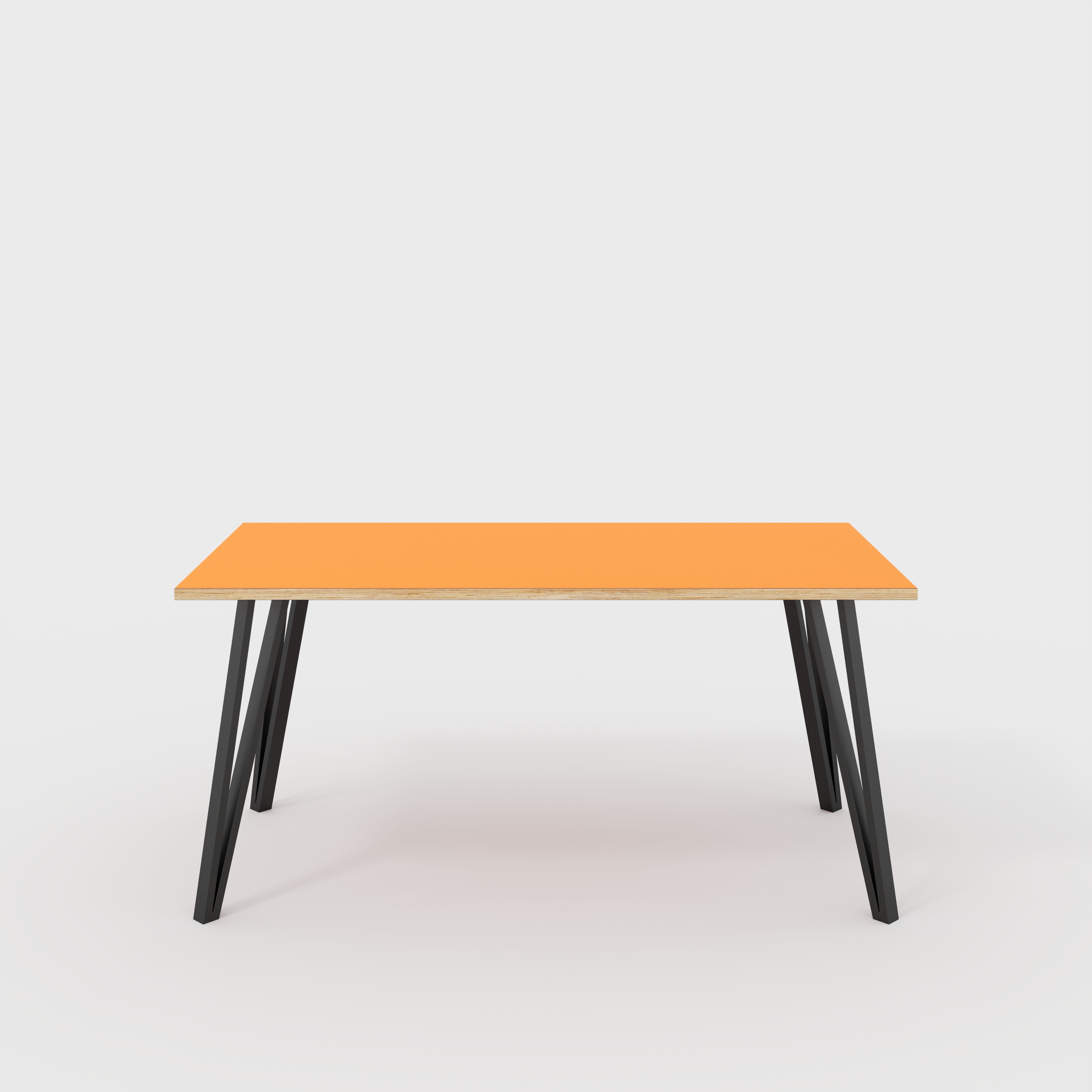 Plywood Table with Black Box Hairpin Legs - Formica Levante Orange - 1600(w) x 800(d) x 735(h)