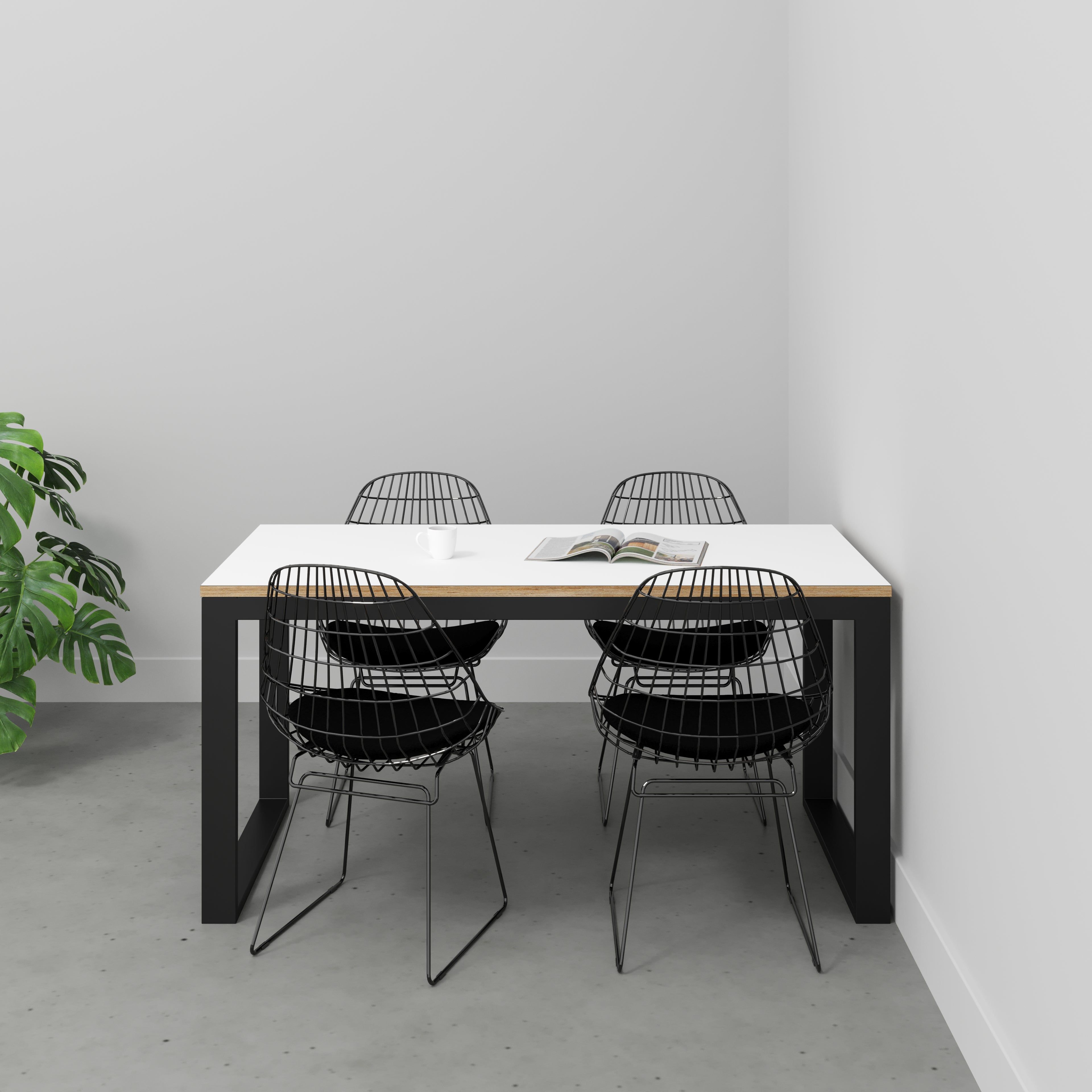 Plywood Table with Black Industrial Frame - Formica White - 1500(w) x 745(d) x 735(h)