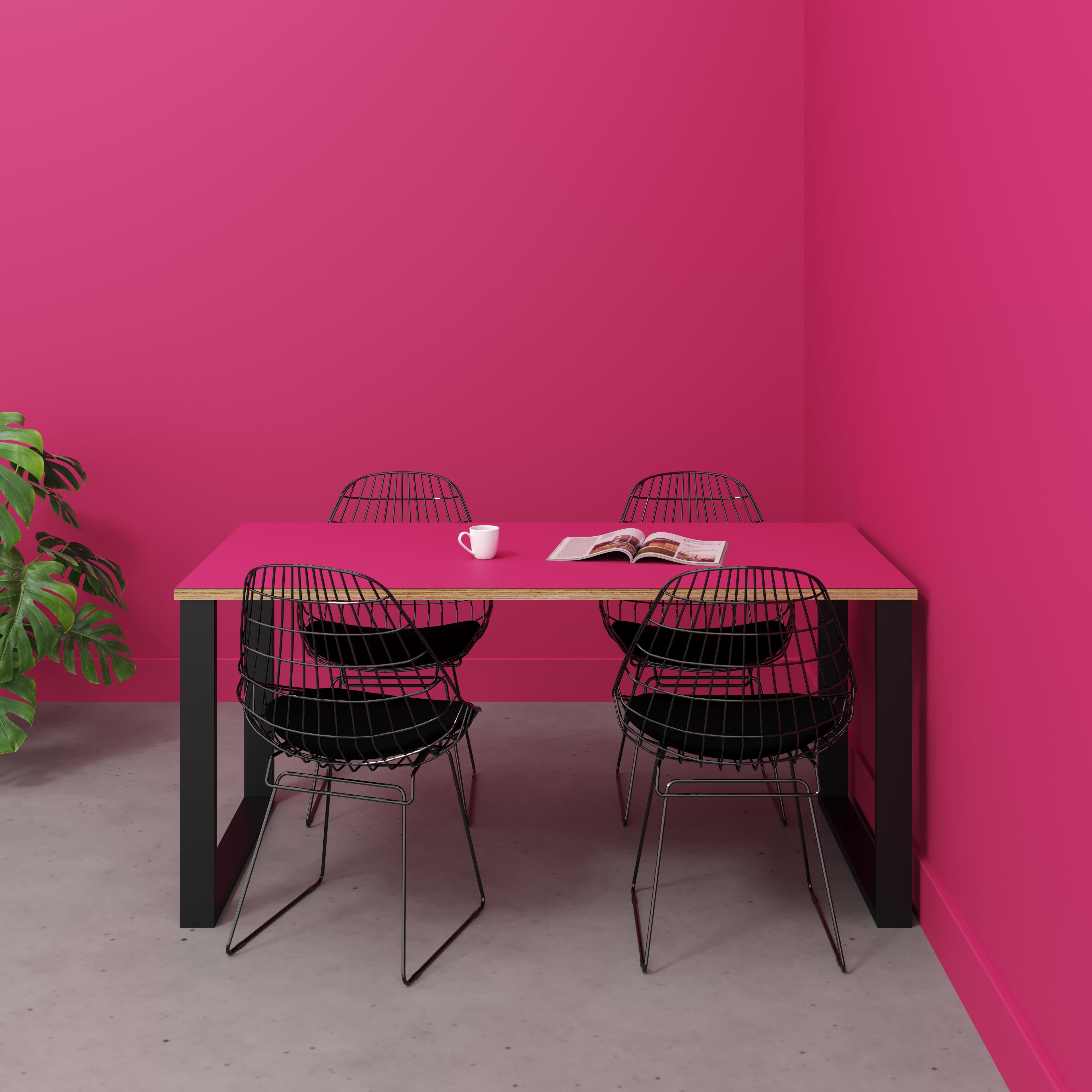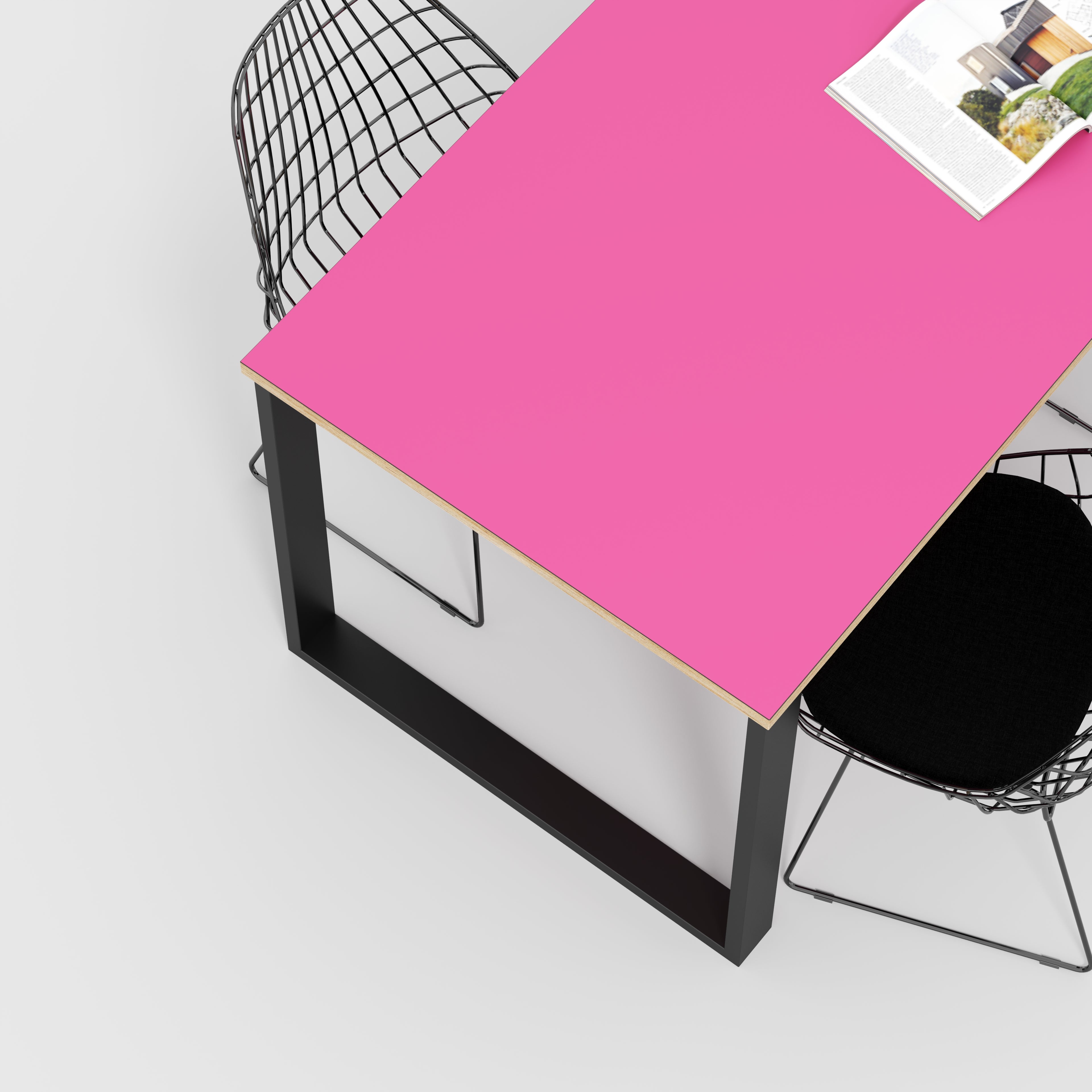 Plywood Table with Black Industrial Legs - Formica Juicy Pink - 1600(w) x 800(d)