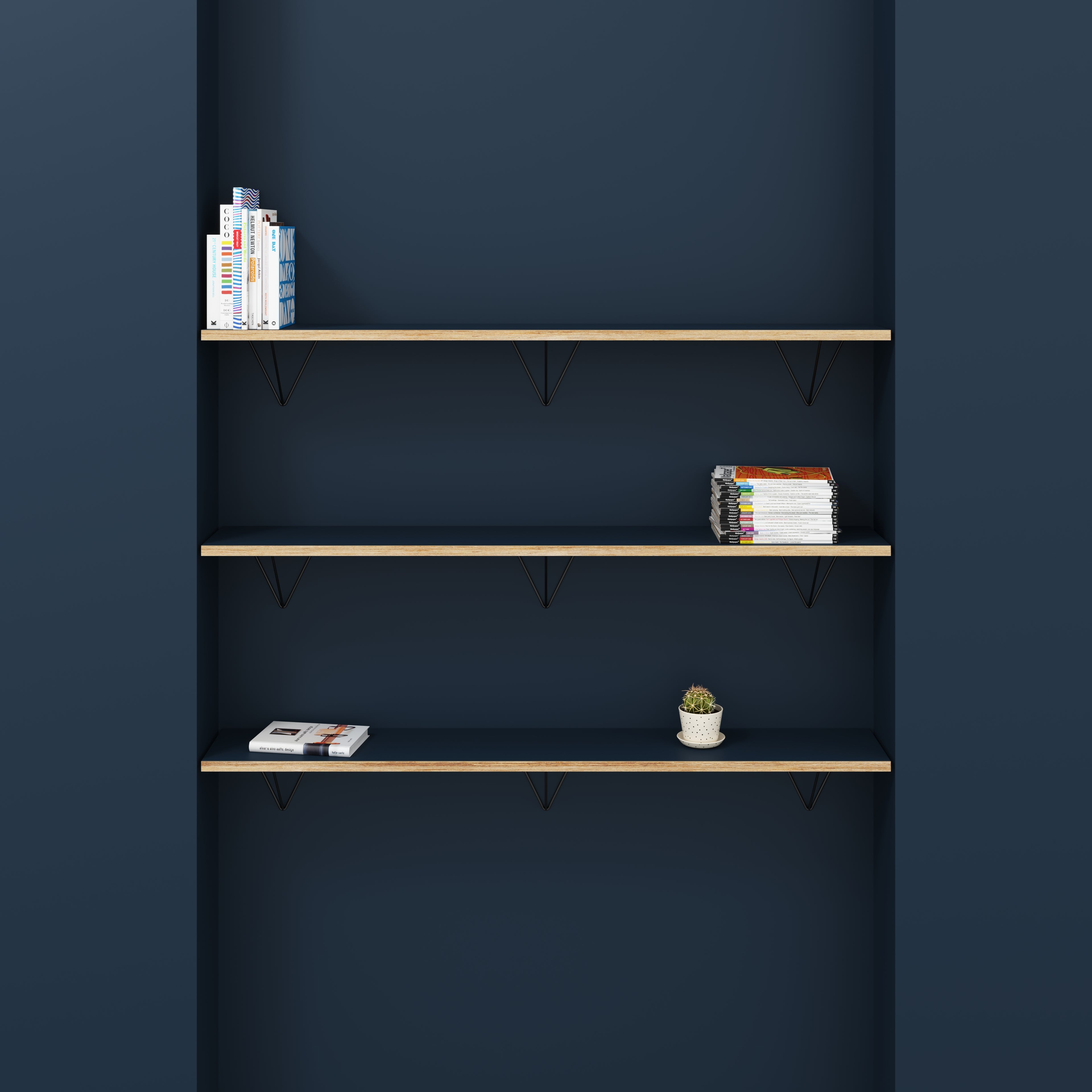 Plywood Wall Shelf with Prism Brackets - Formica Night Sea Blue - 1600(w) x 250(d)